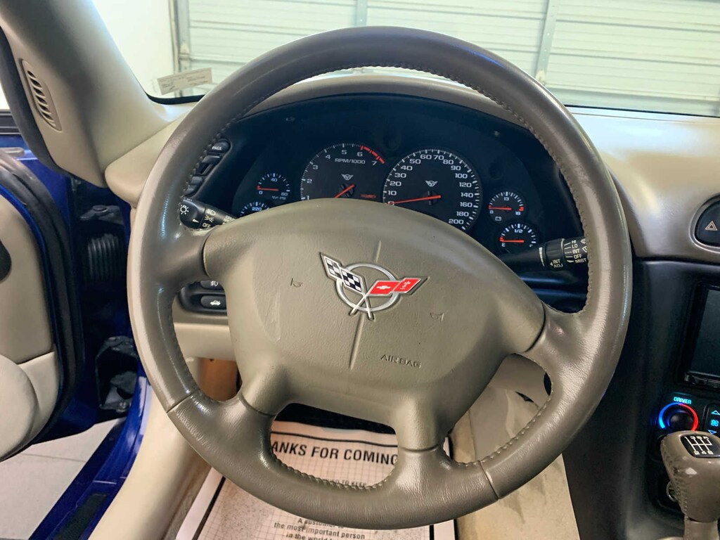 includes (UV6) Head-Up Display, (AAB) Memory Package, (DD0) Mirrors, inside rearview and driver outside rearview, electrochromic (light-sensitive auto dimming), (N37) Steering colum, power telescopic, (Z15) Commemorative Edition, (T82) Twilight Sentinel, headlamp control system, (QF5) Wheels, High-Polished, 5-Spoke Aluminum, 3 driver settings, remembers presets for 6-way power seat, outside mirrors, climate control, radio presets and telescoping steering column, if equipped. (350 HP [261.0 kW] @ 5200 rpm, 375 lb.-ft. [506.2 N-m] @ 4400 rpm for manual transmission, 360 lb.-ft. [486.0 N-m] @ 4000 rpm for automatic transmission) (STD). Chevrolet Corvette with LeMans Blue Metallic exterior and Shale Commemorative interior features a 8 Cylinder Engine with 350 HP at 5200 RPM*.