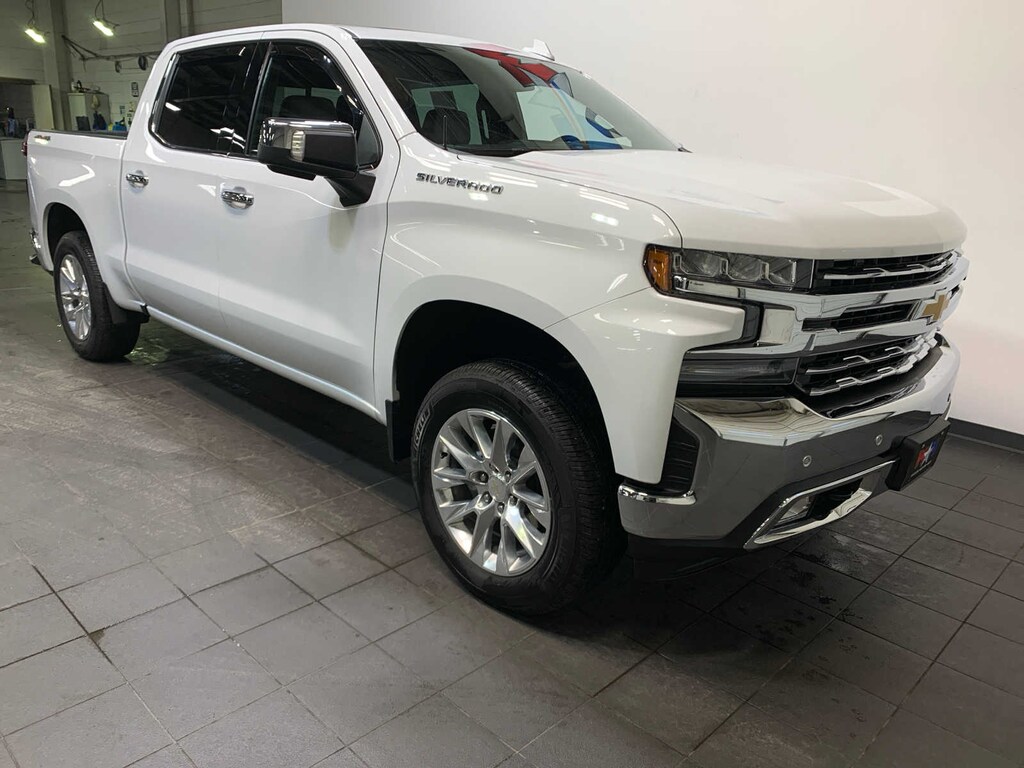 on Crew Cab models, (dealer-installed), with six functional load/access features, 8 diagonal HD color touchscreen, AM/FM stereo, Bluetooth® audio streaming for 2 active devices, wireless Apple CarPlay® and Android Auto® capable, voice recognition, in-vehicle apps, cloud connected personalization for select infotainment and vehicle settings. Subscription required for enhanced and connected services after trial period. (STD), (355 hp [265 kW] @ 5600 rpm, 383 lb-ft of torque [518 Nm] @ 4100 rpm); featuring available Dynamic Fuel Management that enables the engine to operate in 17 different patterns between 2 and 8 cylinders, depending on demand, to optimize power delivery and efficiency (STD) (NOTE: Certain 21MY vehicles will include (YK9) Not Equipped with Dynamic Fuel Management.), with overdrive and tow/haul mode. Includes Cruise Grade Braking and Powertrain Grade Braking (STD), includes (UD5) Front and Rear Park Assist, (UKC) Lane Change Alert with Side Blind Zone Alert and (UFG) Rear Cross Traffic Alert (Includes Perimeter Lighting.). Chevrolet LTZ with Summit White exterior and Gideon/Very Dark Atmosphere interior features a 8 Cylinder Engine with 355 HP at 5600 RPM*.