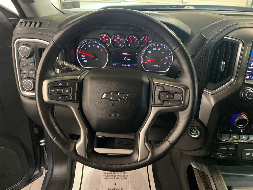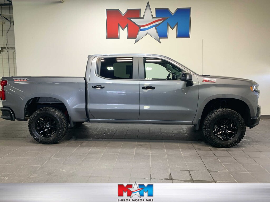 includes (UG1) Universal Home Remote, (A48) rear sliding power window, (KI4) 120-volt power outlet, (KC9) 120-volt bed-mounted power outlet, (IOS) Chevrolet Infotainment System with 8 diagonal color touch-screen with (MCR) USB ports, SiriusXM with 360L, (U2L) HD Radio and (UVB) HD Rear Vision Camera Includes (UQA) Bose Premium Sound System. Certain 21MY vehicles will include (RG0) Not Equipped with HD Radio, which removes (U2L) HD Radio. See dealer for details.), includes (UD5) Front and Rear Park Assist, (UKC) Lane Change Alert with Side Blind Zone Alert and (UFG) Rear Cross Traffic Alert (Includes Perimeter Lighting. 8 diagonal HD color touchscreen, AM/FM stereo, Bluetooth® audio streaming for 2 active devices, wireless Apple CarPlay® and Android Auto® capable, voice recognition, in-vehicle apps, cloud connected personalization for select infotainment and vehicle settings. Subscription required for enhanced and connected services after trial period. (355 hp [265 kW] @ 5600 rpm, 383 lb-ft of torque [518 Nm] @ 4100 rpm); featuring available Dynamic Fuel Management that enables the engine to operate in 17 different patterns between 2 and 8 cylinders, depending on demand, to optimize power delivery and efficiency (STD), with overdrive and tow/haul mode. Includes Cruise Grade Braking and Powertrain Grade Braking (STD) (Most vehicles built on or after 6-7-2021 with a V8 engine and (MQB) 10-speed automatic transmission will have (NSS) Not Equipped with Automatic Stop/Start, which removes Automatic Stop/Start and its content.). Chevrolet LT Trail Boss with Satin Steel Metallic exterior and Jet Black interior features a 8 Cylinder Engine with 355 HP at 5600 RPM*. Local Trade-In AutoCheck One Owner Great Shape