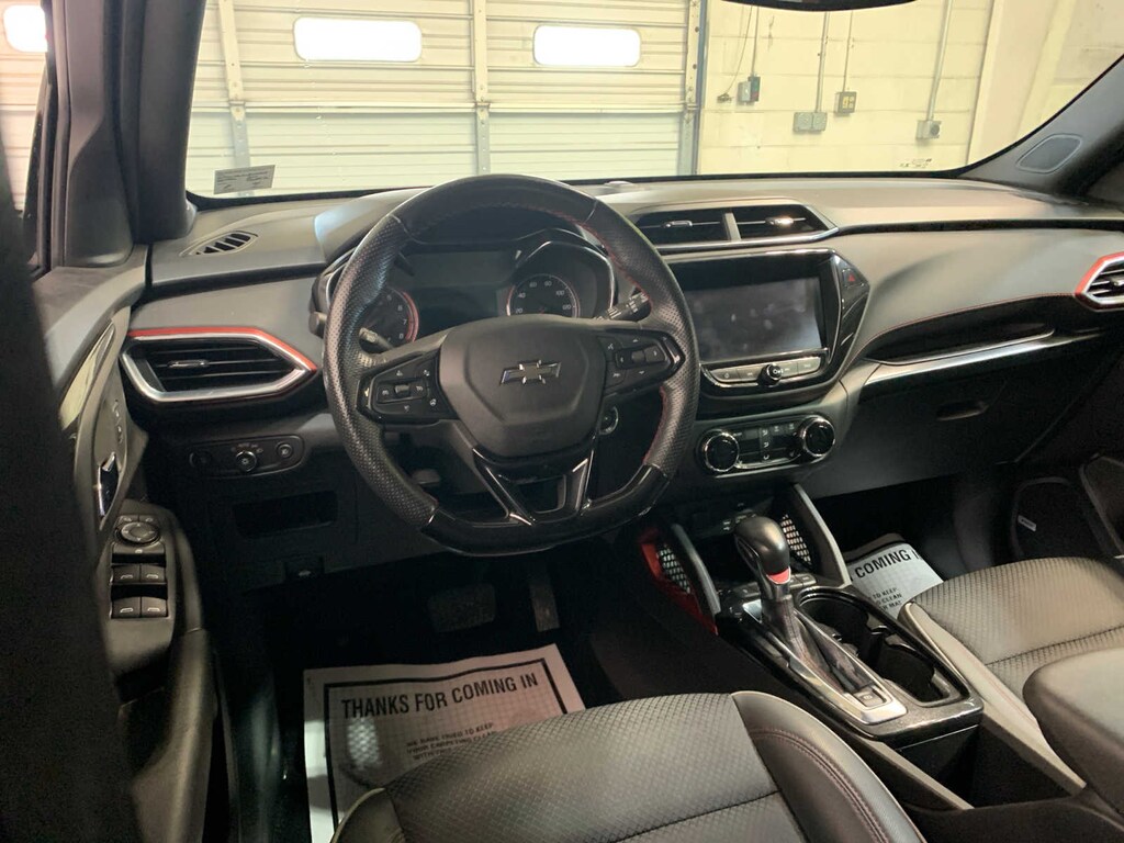 includes (C3U) power, dual-pane, panoramic sunroof and (TC2) power, programmable hands-free liftgate with LED logo projection, includes (IOS) Chevrolet Infotainment 3 Plus system, (U2L) HD Radio, SiriusXM with 360L, (UQA) Bose premium 7-speaker system, (MCR) memory card receptacle, (K4C) Wireless Charging, (KSG) Adaptive Cruise Control, (UVB) HD Rear Vision Camera, (UDD) enhanced, 4.2 diagonal multi-color display Driver Information Center and (T4L) LED headlamps, includes (C68) automatic climate control air conditioning, (UIJ) 8 diagonal color touchscreen display, (USS) one type-A and one type-C charging only USB ports, (KI6) 120-volt power outlet, (DD8) inside rearview auto-dimming mirror and (DMS) driver and front passenger illuminated vanity mirrors, covered, sliding visors, includes (UKC) Lane Change Alert with Side Blind Zone Alert, (UFG) Rear Cross Traffic Alert and (UD7) Rear Park Assist (Vehicles built prior to January 10, 2022 include Rear Park Assist. Certain vehicles built on or after January 10, 2022, will be forced to include (00Y) Not Equipped with Rear Park Assist, which removes Rear Park Assist. See dealer for details or the window label for the features on a specific vehicle.), 8 diagonal HD color touchscreen, AM/FM stereo, Bluetooth® audio streaming for 2 active devices, Apple CarPlay® and Android Auto® capable, voice recognition, in-vehicle apps, cloud connected personalization for select infotainment and vehicle settings. (155 hp [115 kW] @ 5600 rpm, 174 lb-ft torque [236 N-m] @ 1600 rpm) (STD), (STD). Chevrolet RS with Crimson Metallic exterior and Jet Black with Red accents interior features a 3 Cylinder Engine with 155 HP at 5600 RPM*.