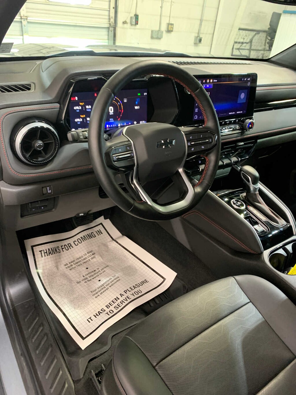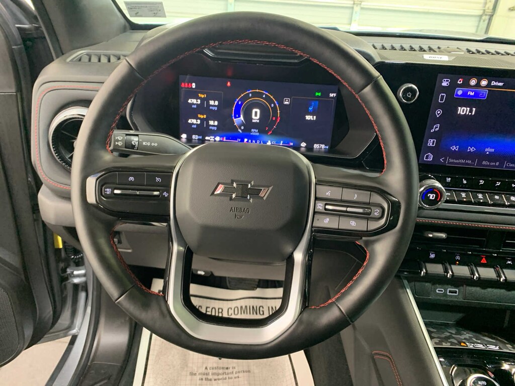 includes (CJ2) Dual-zone automatic climate control, (N37) Tilt and Telescopic steering column, (PPA) EZ lift and lower tailgate, (A2X) 8-way power driver seat, (AL9) Power driver seat lumbar, (KA1) Heated front seats, (BTV) Remote start, (DD8) Auto dimming inside rearview mirror, (BPC) StowFlex Tailgate, (BDR) Locking Cylinder and (K4C) Wireless charging, includes (HUQ) Perforated leather-appointed front seating, (E90) Driver seat back pocket, (DA5) Rear center arm rest, (A45) Driver memory settings, (KU9) Ventilated front seats, (KI3) Heated steering wheel and (B26) Safety Package, (dealer-installed), includes (KSG) Adaptive Cruise Control, (UKK) Rear Pedestrian Alert and (UV2) HD Surround Vision, WHEELS, 20 X 9 (50.8 CM X 22.9 CM) DARK ANDROID ALUMINUM, AUDIO SYSTEM FEATURE, BOSE PREMIUM 7-SPEAKER SYSTEM, BEDLINER, SPRAY-ON, BLACK WITH CHEVROLET LOGO, includes (UKI) Blind Zone Steering Assist, (UFB) Rear Cross Traffic Braking, (UD7) Rear Park Assist - With (ZL6) Advanced Trailering Package, includes (UKW) Blind Zone Steering Assist with Trailering, includes Chevrolet logo, (dealer-installed), (310 hp [231 kW] @ 5600 rpm, 430 lb-ft of torque [583 Nm] @ 3000 rpm) (STD), (STD), includes trailer hitch and 7-pin connector. Chevrolet 4WD Z71 with Sterling Gray Metallic exterior and Jet Black/Adrenaline Red interior features a 4 Cylinder Engine with 310 HP at 5600 RPM*. Local Trade-In