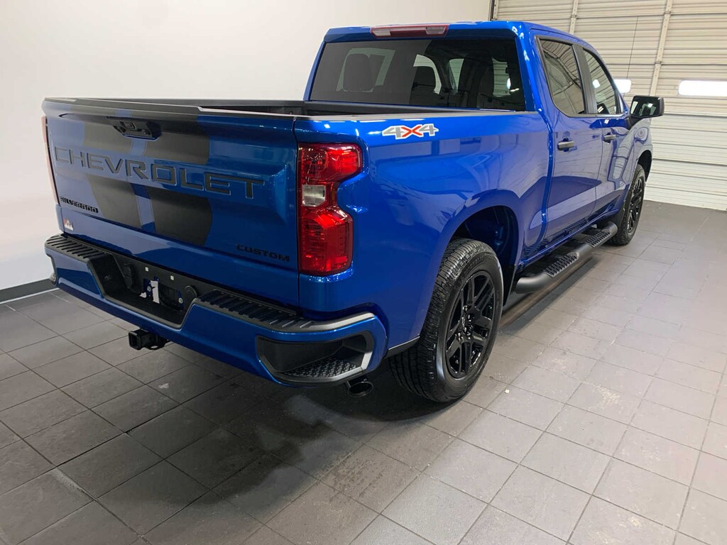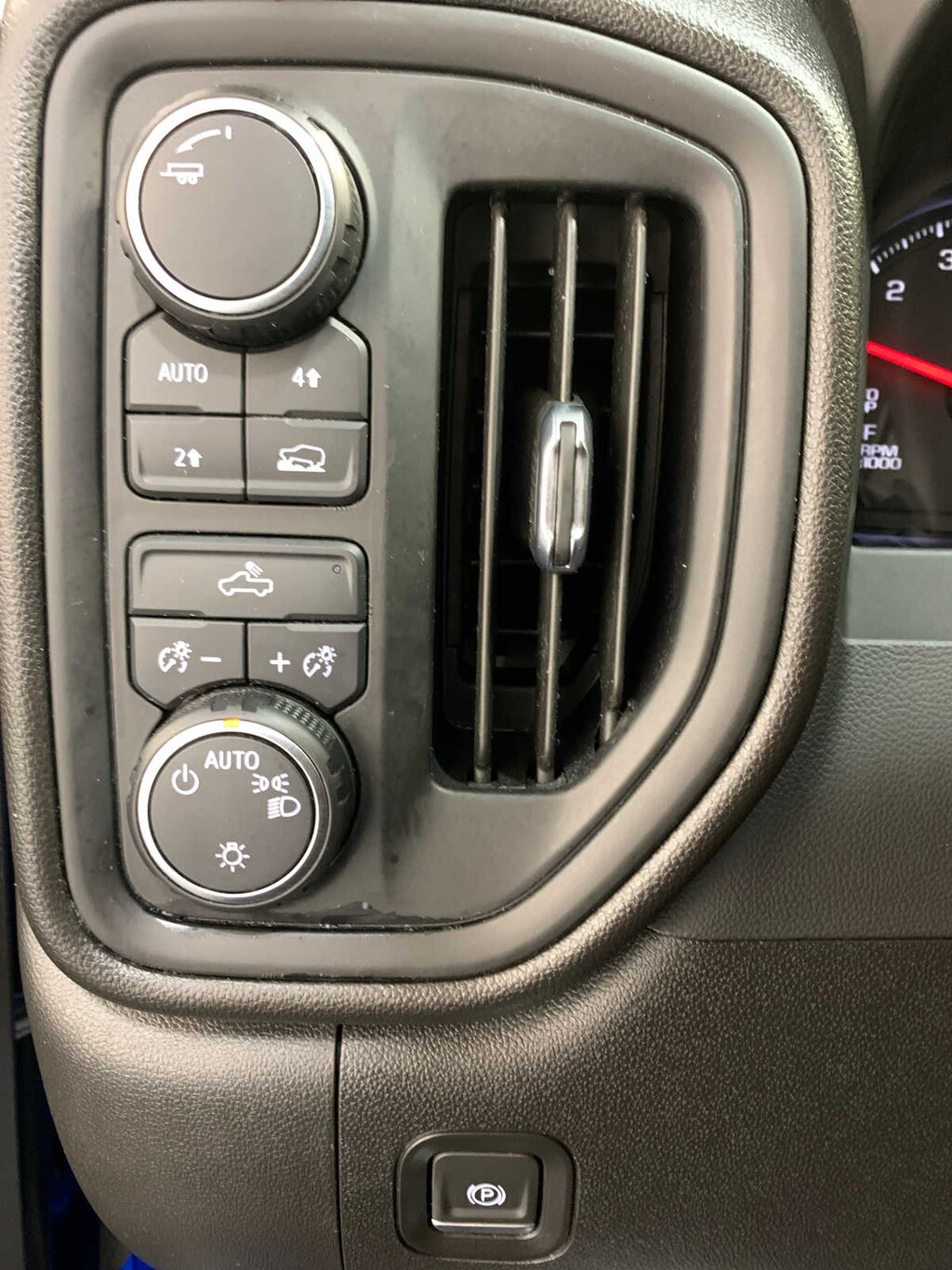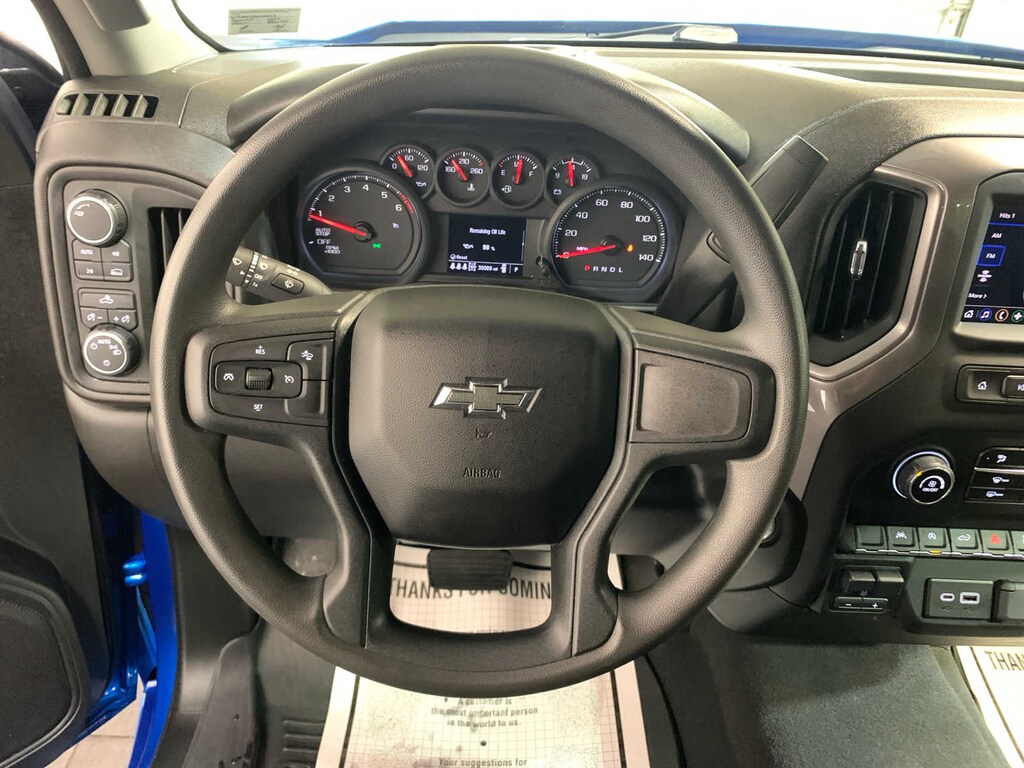 includes Black Rally Stripes (hood & tailgate), Black CHEVROLET tailgate lettering (inset), Black Silverado and trim level badging and (RVS) Black assist steps, LPO Includes (RD5) 20 High gloss Black painted aluminum wheels, Black Bowties (steering wheel horn pad and front grille), (CGN) Chevytec spray-on bedliner and (VTA) Black Chrome exhaust tip, LPO. 7 diagonal HD color touchscreen, AM/FM stereo, Bluetooth® audio streaming for 2 active devices, voice command pass-through to phone, Wireless Apple CarPlay® and Wireless Android Auto® compatibility (STD), (310 hp [231 kW] @ 5600 rpm, 430 lb-ft of torque [583 Nm] @ 3000 rpm) (STD), with overdrive and tow/haul mode. Includes Cruise Grade Braking and Powertrain Grade Braking (STD). Chevrolet Custom with Glacier Blue Metallic exterior and Jet Black interior features a 4 Cylinder Engine with 310 HP at 5600 RPM*. Local Trade-In