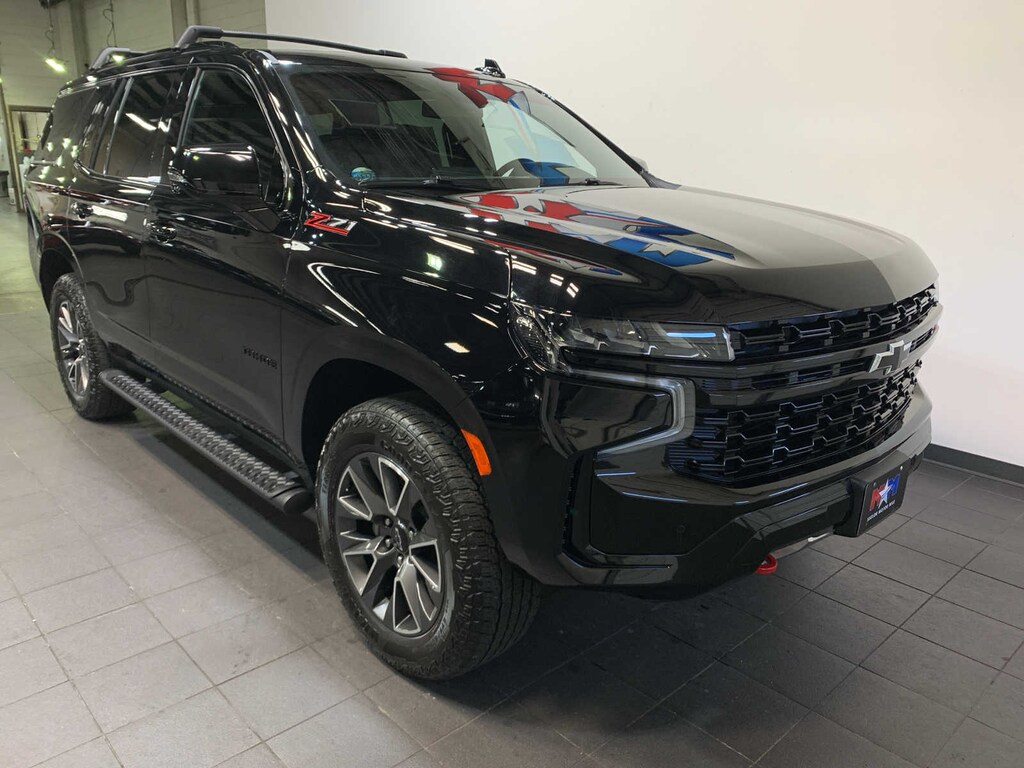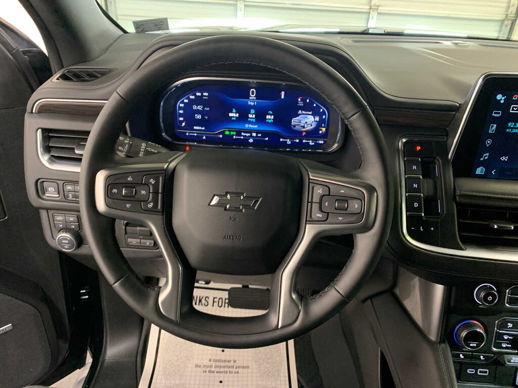 includes (Z95) Magnetic Ride Control, (F47) Air Ride Adaptive suspension and (G96) electronic limited-slip differential, includes (WPD) Driver Alert Package content, (UV2) HD Surround Vision, (UKK) Rear Pedestrian Alert, (A45) memory settings, (DXR) outside heated power-adjustable, power-folding, body-color mirrors with driver-side auto-dimming and integrated turn signal indicators, (N38) power tilt and telescopic steering column, (KI3) heated steering wheel, (KA6) second row outboard heated seats, (ATT) second row power 60/40 split-folding bench seats and (AS8) third row power 60/40 split-folding bench seats, with express-open and close and power sunshade, SEATS, SECOND ROW BUCKET, POWER RELEASE, (dealer-installed), (select service plan required, terms and limitations apply), including nav capability, 10.2 diagonal HD color touchscreen, includes multi-touch display, AM/FM stereo, Bluetooth® streaming audio for music and most phones; featuring wireless Apple CarPlay® and wireless Android Auto® capability for compatible phones, advanced voice recognition, in-vehicle apps, personalized profiles for infotainment and vehicle settings (STD), STEERING WHEEL, HEATED, with Dynamic Fuel Management, Direct Injection and Variable Valve Timing, includes aluminum block construction (420 hp [313 kW] @ 5600 rpm, 460 lb-ft of torque [624 Nm] @ 4100 rpm), electronically controlled with overdrive, includes Traction Select System including tow/haul (STD), includes (UKC) Lane Change Alert with Side Blind Zone Alert and (UFG) Rear Cross Traffic Alert. Chevrolet Z71 with Black exterior and Jet Black interior features a 8 Cylinder Engine with 420 HP at 5600 RPM*.