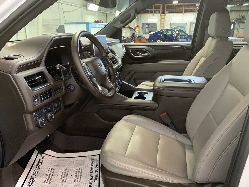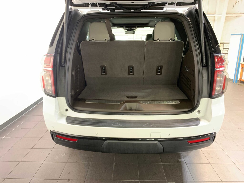 includes (WPD) Driver Alert Package content, (UV2) HD Surround Vision, (UKK) Rear Pedestrian Alert, (A45) memory settings, (DXR) outside heated power-adjustable, power-folding, body-color mirrors with driver-side auto-dimming and integrated turn signal indicators, (N38) power tilt and telescopic steering column, (KI3) heated steering wheel, (KA6) second row outboard heated seats, (ATT) second row power 60/40 split-folding bench seats and (AS8) third row power 60/40 split-folding bench seats, with express-open and close and power sunshade, SEATS, SECOND ROW BUCKET, POWER RELEASE, (dealer-installed), (select service plan required, terms and limitations apply), including nav capability, 10.2 diagonal HD color touchscreen, includes multi-touch display, AM/FM stereo, Bluetooth® streaming audio for music and most phones; featuring wireless Apple CarPlay® and wireless Android Auto® capability for compatible phones, advanced voice recognition, in-vehicle apps, personalized profiles for infotainment and vehicle settings (STD), STEERING WHEEL, HEATED, with Dynamic Fuel Management, Direct Injection and Variable Valve Timing, includes aluminum block construction (355 hp [265 kW] @ 5600 rpm, 383 lb-ft of torque [518 Nm] @ 4100 rpm) (STD), electronically controlled with overdrive, includes Traction Select System including tow/haul (STD), includes (UKC) Lane Change Alert with Side Blind Zone Alert and (UFG) Rear Cross Traffic Alert. Chevrolet Z71 with Summit White exterior and Gideon/Very Dark Atmosphere interior features a 8 Cylinder Engine with 355 HP at 5600 RPM*.