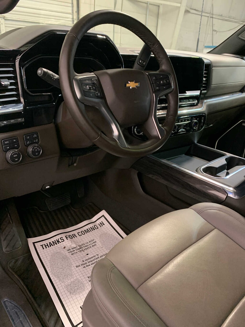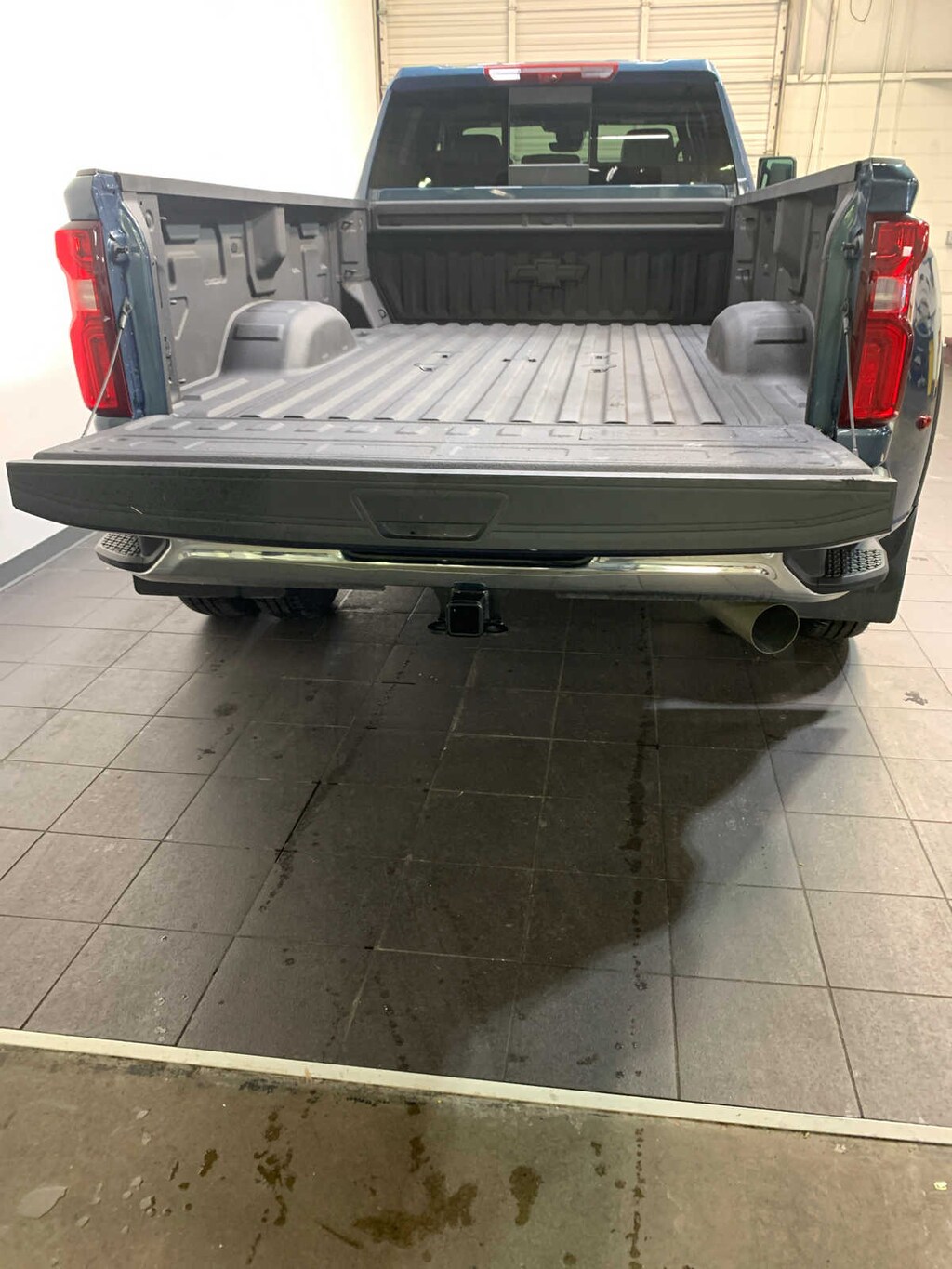 (470 hp [350.5 kW] @ 2800 rpm, 975 lb-ft of torque [1322 Nm] @ 1600 rpm), includes (A50) bucket seats with (D07) center console, (KQV) heated and ventilated front seats, (QT6) power up/down tailgate, (UF2) bed LED cargo area lighting, (UBC) USB Ports, (UQA) Bose Premium Audio System and (K4C) Wireless Charging, WHEELS, 18 (45.7 CM) POLISHED FORGED ALUMINUM, includes (DRZ) Rear Camera Mirror and (UV6) 15 Diagonal Head-Up Display, includes (UD5) Front and Rear Park Assist, (UKV) Trailer Side Blind Zone Alert, (UFG) Rear Cross Traffic Alert, (UV2) HD Surround Vision, (UVN) Bed View Camera and (TRG) Trailer Camera Provisions Includes (HS1) Safety Alert Seat.)-- Hitch platform to accept Gooseneck or 5th Wheel hitch. Includes hitch platform with tray to accept ball, stamped bed holes with removable caps installed and bed mounted 7-pin trailer harness (similar to UY2 harness). (Includes (CGN) Chevytec spray-on bedliner.), includes (A48) Rear sliding power window, (UG1) Universal Home Remote, (KA6) Rear heated seats and (KSG) Adaptive Cruise Control, SUNROOF, POWER ON CREW CAB MODELS, GVWR, 14,000 LBS. (6350 KG) WITH DUAL REAR WHEELS, with Google built-in compatibility (select service plan required, terms and limitations apply) including navigation capability, 13.4 diagonal HD color touchscreen, includes multi-touch display, AM/FM stereo, Bluetooth® streaming audio for music and most phones; featuring Wireless Apple CarPlay® and Wireless Android Auto® capability for compatible phones, advanced voice recognition, in-vehicle apps, personalized profiles for infotainment and vehicle settings (STD), TRANSMISSION, ALLISON 10-SPEED AUTOMATIC. Chevrolet LTZ with Lakeshore Blue Metallic exterior and Gideon/Very Dark Atmosphere interior features a 8 Cylinder Engine with 470 HP at 2800 RPM*. New Tires