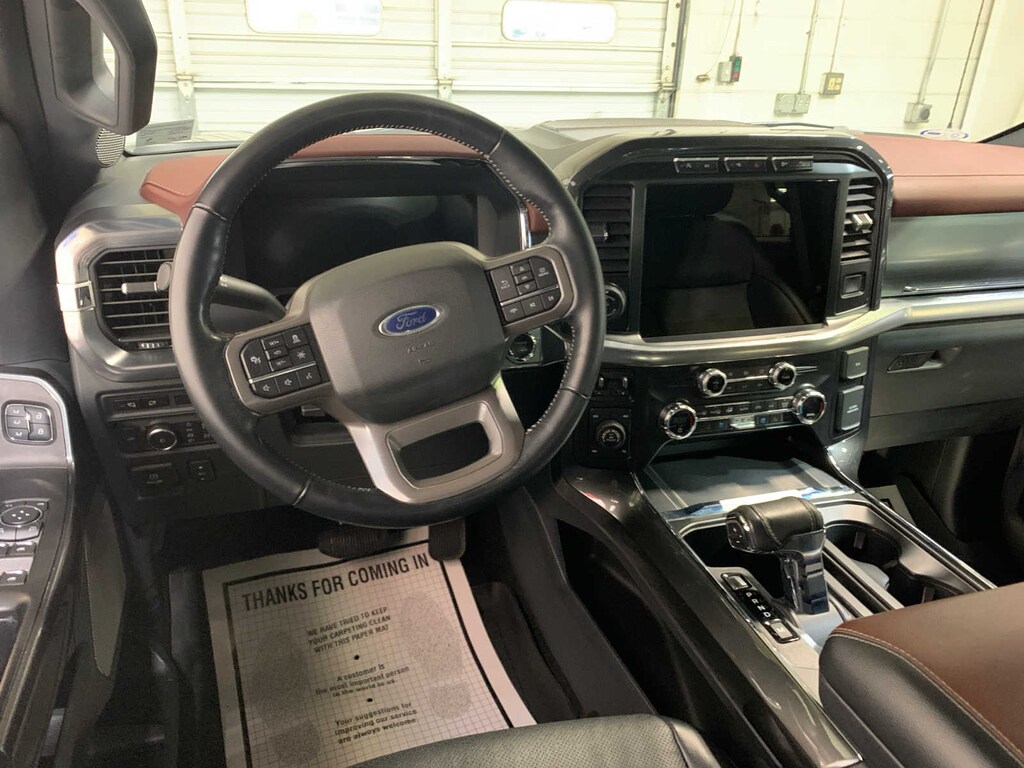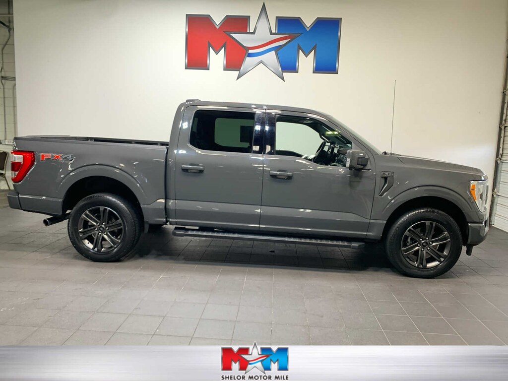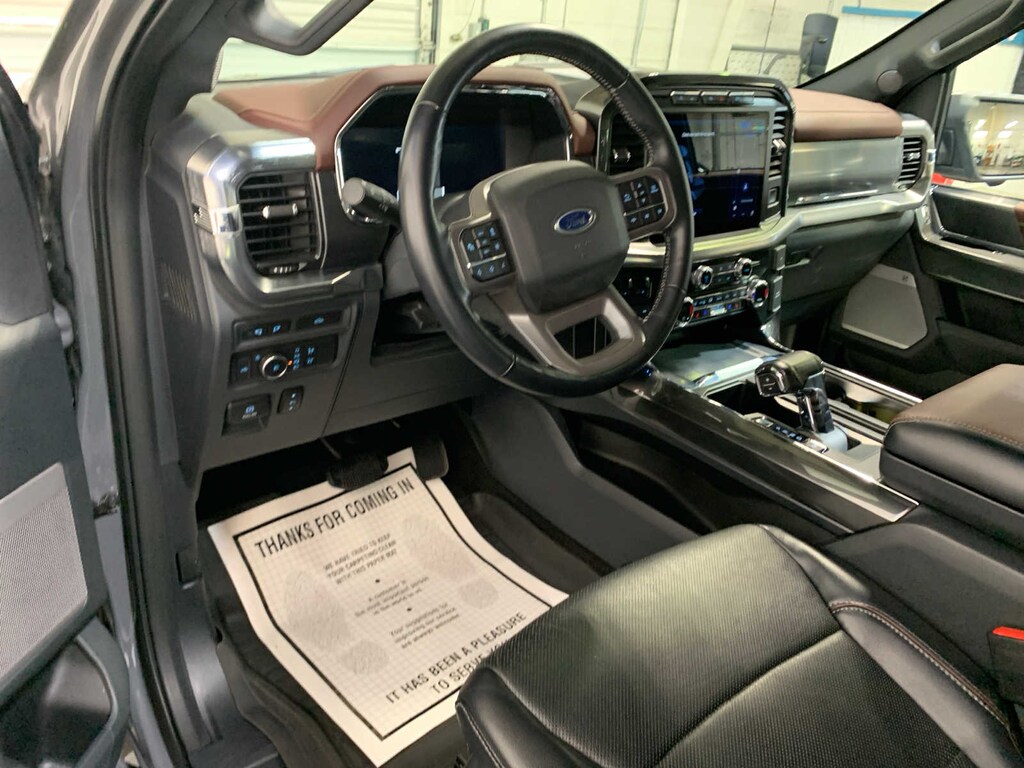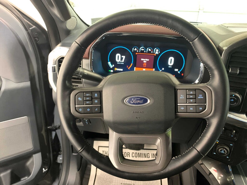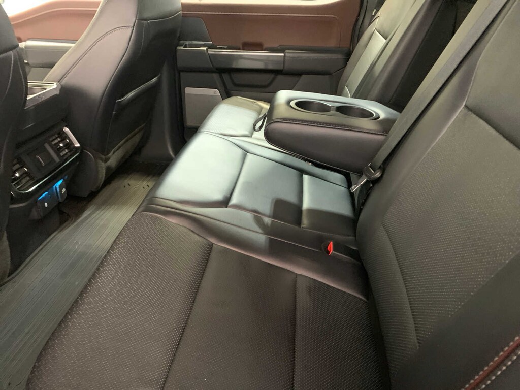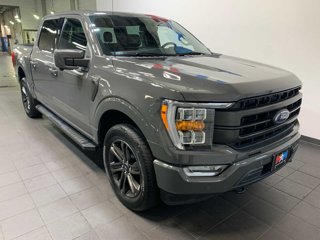 unique interior finish, Box Side Decals, Chrome Single-Tip Exhaust, Wheels: 18 6-Spoke Machined Aluminum, gloss black painted pockets, Accent-Color Angular Step Bars, Dark 2-Bar & 1 Minor Bar Style Grille, black surround and black mesh, Body-Color Front & Rear Bumpers, TWIN PANEL MOONROOF, auto start-stop technology, GVWR: 7,050 lbs Payload Package, 3.31 Axle Ratio, WHEELS: 20 6-SPOKE DARK ALLOY PAINTED ALUMINUM, Radio: B&O Sound System by Bang & Olufsen, HD radio and 8 speakers including subwoofer, Universal Garage Door Opener, Onboard 400W Outlet, Replaces two (2) front USB charge only ports, Off-Road Tuned Front Shock Absorbers, Skid Plates, fuel tank, transfer case and front differential, Monotube Rear Shocks, Rock Crawl Mode, 4x4 FX4 Off-Road Bodyside Decal, Hill Descent Control, Tray Style Floor Liner, smart trailer tow connector and BLIS w/trailer tow coverage where BLIS is available, Integrated Trailer Brake Controller, 360 Degree Camera, trailer reverse guidance, Pro Trailer Backup Assist, Evasive Steering Assist, Intelligent Adaptive Cruise Control w/Stop & Go, lane centering, Speed Sign Recognition, Connected Built-In Navigation, Navigation services require SYNC4 and FordPass Connect (optional on select vehicles), complimentary connect service and the FordPass app (see FordPass Terms for details), Eligible vehicles receive a complimentary 90-day trial of navigation services that begins on the new vehicle warranty start date, Customers must unlock the navigation service trial by activating the eligible vehicle w/a FordPass member account, If not subscribed by the end of the complimentary period, the navigation service will terminate, Connected service and features depend on compatible AT&T network availability, Evolving technology/cellular networks/vehicle capability may, tailgate step and tailgate work surface, TOUGH BED SPRAY-IN BEDLINER, ELECTRONIC LOCKING W/3.55 AXLE RATIO, EXTENDED RANGE 36 GALLON FUEL TANK, selectable drive modes: normal, ECO, sport, tow/haul, slippery, deep snow/sand and mud/rut (STD). Ford LARIAT with Lead Foot exterior and Black interior features a V6 Cylinder Engine with 325 HP at 5000 RPM*.
