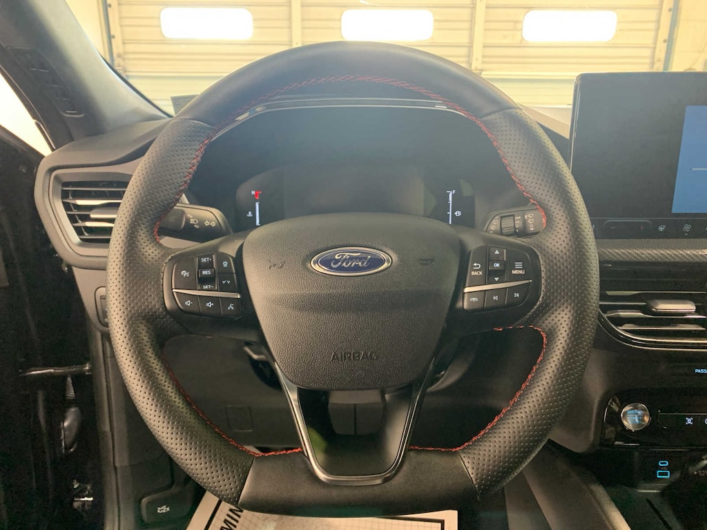 power open/close w/power shade, Black Roof-Rack Side Rails, SYNC 4 w/Enhanced Voice Recognition, 13.2 LCD capacitive touch-screen w/swipe capability, wireless phone connection, cloud connected, AppLink w/app catalog, 911 Assist, wireless Apple CarPlay® and Android Auto®, digital owners manual, Rear View Camera, Ford Co-Pilot360 Assist+, Rear Parking Sensor, Connected Built-In Navigation, 3 years of service, pinch-to-zoom capability, live traffic, predictive destinations and route guidence, Evasive Steering Assist, Intelligent Adaptive Cruise Control w/Stop-and-Go, stop-and-go and lane centering assist, Speed Sign Recognition, standard front and rear carpeted floor mats, auto start-stop technology (STD). Ford ST-Line with Agate Black Metallic exterior and Ebony interior features a 3 Cylinder Engine with 180 HP at 6000 RPM*. New Tires
