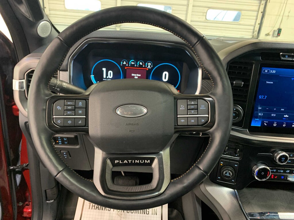 Ford BlueCruise 1.0, forward sensing system, Active Park Assist 2.0, 360 Degree Camera, trailer reverse guidance, Radio: B&O Unleashed Sound System by Bang & Olufsen, HD Radio and 18 speakers including subwoofer, Pro Trailer Backup Assist & Pro Trailer Hitch Assist, Bed Utility Package, BoxLink, 4 premium locking cleats, LED Box Lighting, Tailgate Step w/Tailgate Work Surface, Power Tailgate, Electronic Locking w/3.73 Axle Ratio, TWIN PANEL MOONROOF, Towing capability up to TBD lbs, Pro Trailer Backup Assist & Pro Trailer Hitch Assist, TRAY STYLE FLOOR LINER. Ford Platinum with Rapid Red Metallic Tinted Clearcoat exterior and Black interior features a V6 Cylinder Engine with 400 HP at 6000 RPM*.