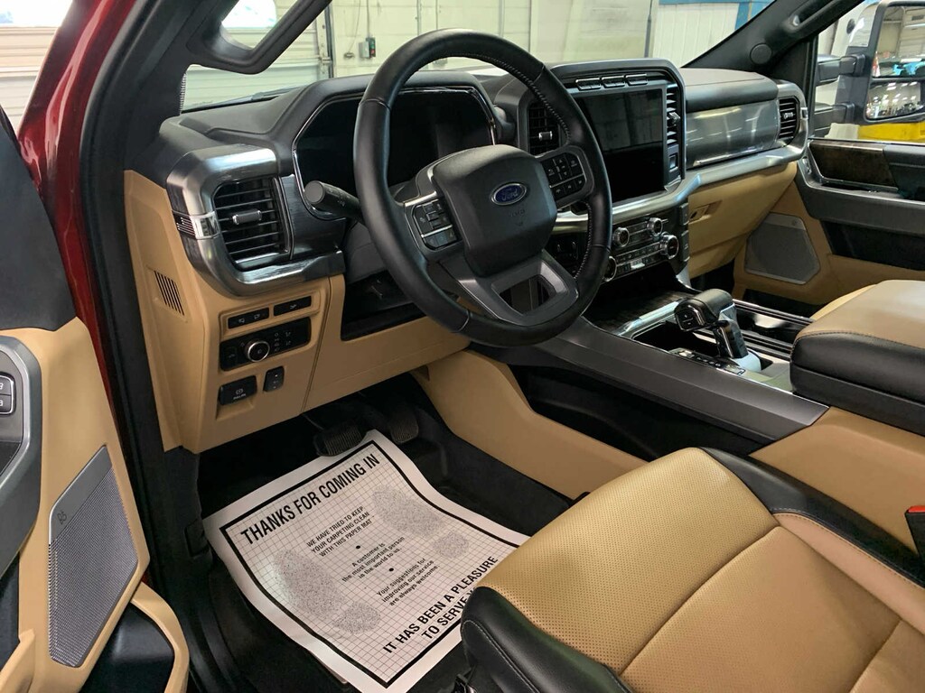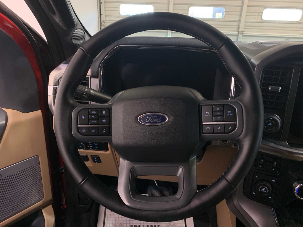 auto start-stop technology and flex-fuel capability, GVWR: 7,050 lbs Payload Package, 3.31 Axle Ratio, Towing capability up to TBD lbs, Integrated Trailer Brake Controller, Pro Trailer Backup Assist & Pro Trailer Hitch Assist, trailer reverse guidance, rain-sensing wipers, Evasive Steering Assist, Connected Built-In Navigation, Navigation services require SYNC4 and FordPass Connect (optional on select vehicles), complimentary connect service and the FordPass app (see FordPass Terms for details), Eligible vehicles receive a complimentary 90-day trial of navigation services that begins on the new vehicle warranty start date, Customers must unlock the navigation service trial by activating the eligible vehicle w/a FordPass member account, If not subscribed by the end of the complimentary period, the navigation service will terminate, Connected service and features depend on compatible AT&T network availability, Evolving technology/cellular networks/vehicle capability may limit functionality and prevent operation of connected features, ONBOARD SCALE W/SMART HITCH, ELECTRONIC LOCKING W/3.73 AXLE RATIO, RAPID RED METALLIC TINTED CLEARCOAT, EXTENDED RANGE 36 GALLON FUEL TANK, heat, turn signal, memory, LED Sideview Mirror Spotlights, high-intensity LED security approach lamps, selectable drive modes: normal, ECO, sport, tow/haul, slippery, deep snow/sand and mud/rut (STD). Ford LARIAT with Rapid Red Metallic Tinted Clearcoat exterior and Black w/Baja Tan interior features a 8 Cylinder Engine with 325 HP at 5000 RPM*.