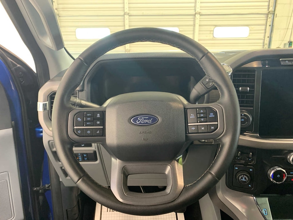 Adaptive Cruise Control w/Stop & Go, lane centering, Speed Sign Recognition, Intelligent Access w/Push Button Start, approach detection, 400W Cab & Bed Outlets, Ford BlueCruise Equipped (90-Day Trial), See ford.com/bluecruise for version details, Power-Sliding Rear Window, Remote Start System w/Remote Tailgate Release, Heated Front Seats, Power Glass Heated Sideview Mirrors, manual folding, turn signals, high-intensity LED security approach lamps, LED sideview mirror spotlights and chrome skull caps, Auto-Dimming Rearview Mirror, auto start-stop technology, GVWR: 7,100 lbs Payload Package, Tires: 275/60R20 BSW Automatic Transmission, Tailgate Step w/Tailgate Work Surface, LED Box Lighting, 4 Pickup Box Tie-Down Plates, TOUGH BED SPRAY-IN BEDLINER, MAX TOW ELECTRONIC LOCKING W/3.55 AXLE RATIO, TRAY STYLE FLOOR LINER W/CARPET MATS, SelectShift w/progressive range select and selectable drive modes: normal, ECO, sport, tow/haul, slippery, deep snow/sand and mud/rut (STD). Ford XLT with Atlas Blue Metallic exterior and Black w/Medium Dark Slate interior features a V6 Cylinder Engine with 325 HP at 5500 RPM*.