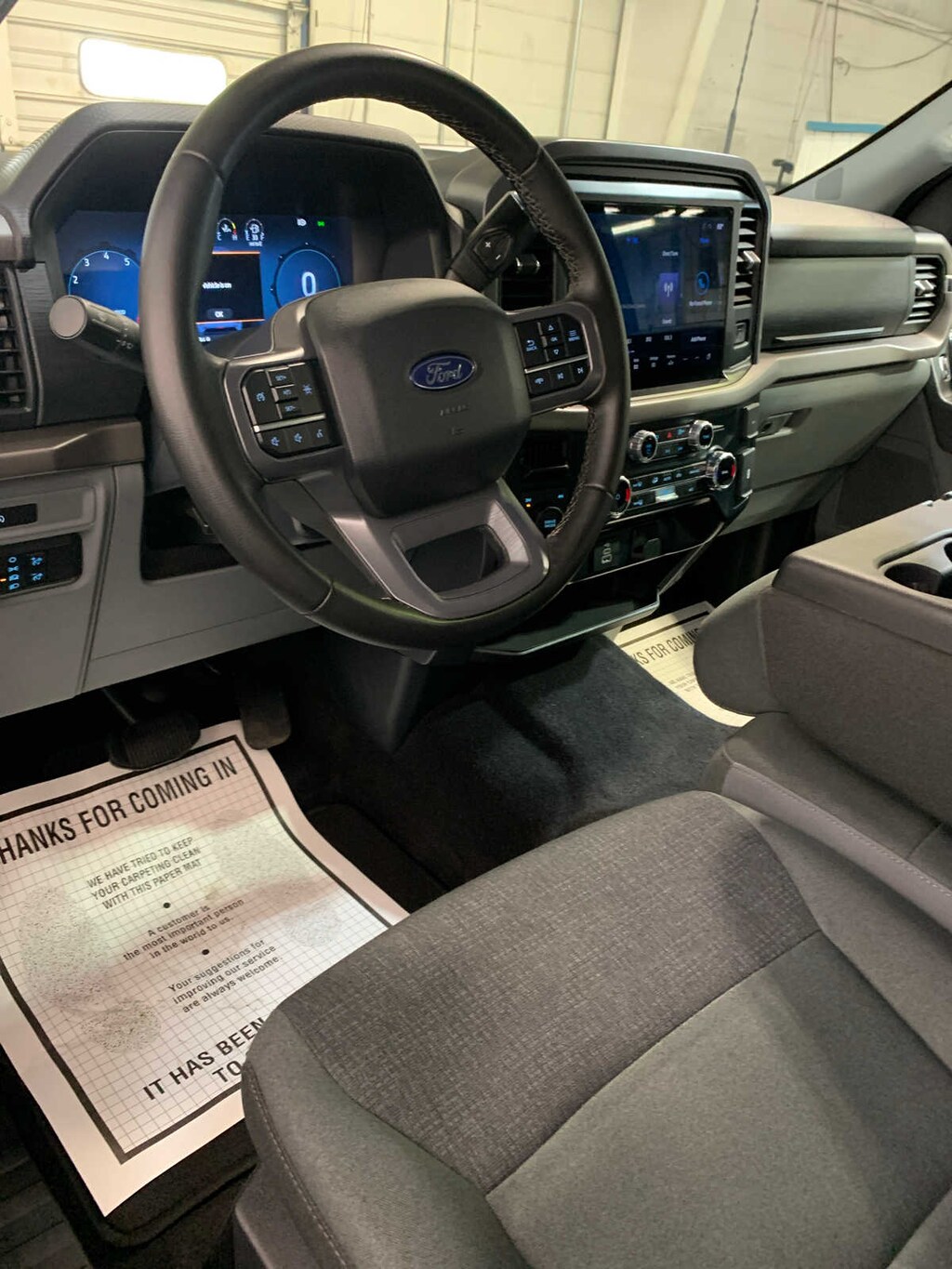 auto start-stop technology, 3.31 Axle Ratio, GVWR: 7,100 lbs Payload Package, Chrome Door & Tailgate Handles, Wrapped Steering Wheel, Black Painted Grille w/Chrome Center Bar, coast to coast black mesh, Dual-Zone Electronic Automatic Temperature Control, (DEATC), 6 Angular Bright Anodized Step Bar, Chrome Single-Tip Exhaust, SelectShift w/progressive range select and selectable drive modes: normal, ECO, sport, tow/haul, slippery, deep snow/sand and mud/rut (STD). Ford XLT with Carbonized Gray exterior and Black w/Medium Dark Slate interior features a 8 Cylinder Engine with 325 HP at 5000 RPM*.
