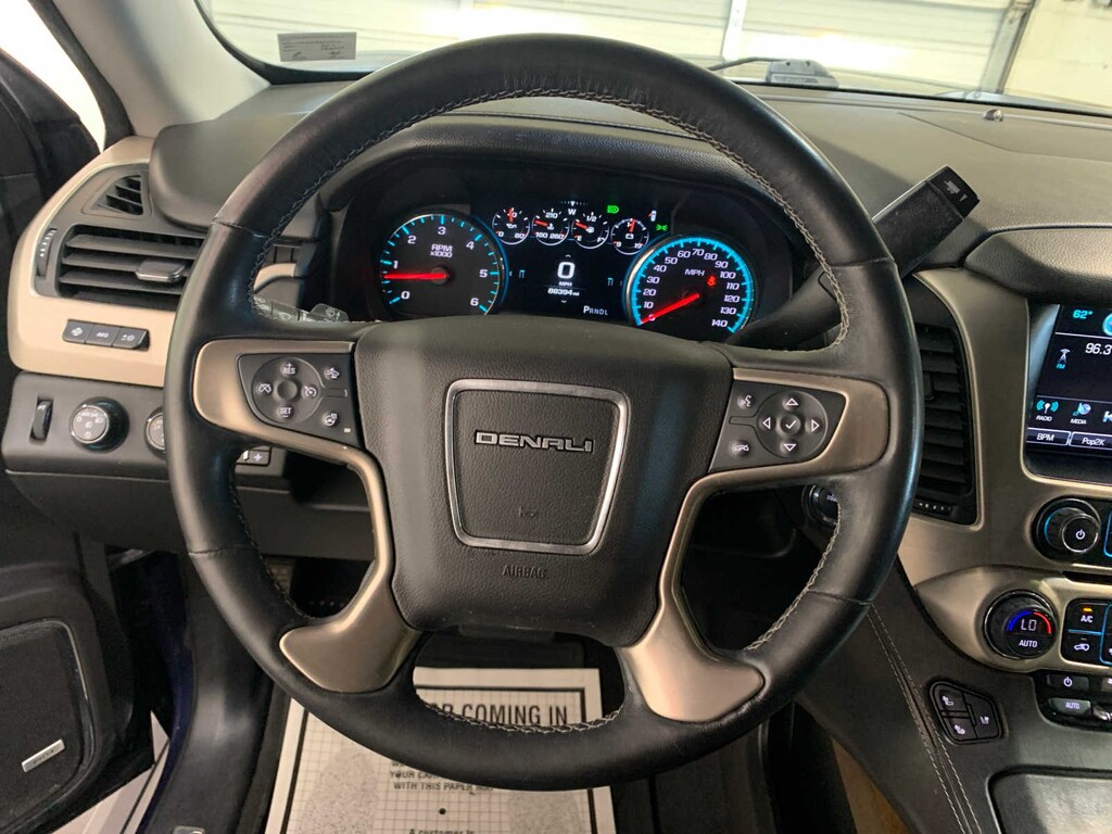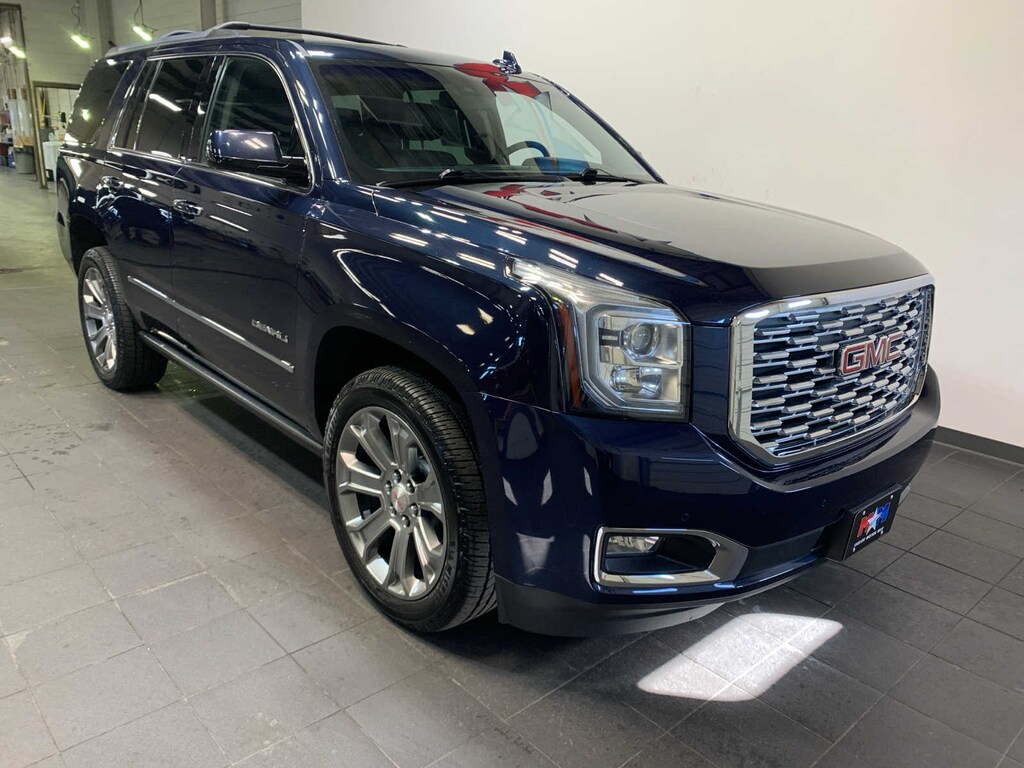 LPO wheels will come with 4 steel 22 wheels from the factory with alignment specs set to 22 LPO wheel selected (dealer-installed), (CF5) power sunroof, (U42) rear seat entertainment system and on SLT (IO6) Audio system with navigation, with bright accent strip and perimeter lighting, with remote control, overhead display, Wi-Fi wireless projection capability, two 2-channel wireless digital headphones, auxiliary HDMI/MHL audio/video input and 2 USB ports, with Forward Automatic Braking, radar based system automatically adjusts speed to maintain preset following gap, DARK SAPPHIRE BLUE METALLIC, body security content, includes (UTR) self-powered horn, (UTV) interior movement and (UTU) vehicle inclination sensors, door and liftgate lock shields and glass break sensors in rear quarter glass and liftgate window, removes sunglass holder and conversation mirror from overhead console, LPO, BLACK ROOF RACK CROSS RAILS, (DEALER-INSTALLED), AM/FM/SiriusXM stereo with seek-and-scan and digital clock, includes Bluetooth® streaming audio for music and select phones; voice-activated technology for radio and phone; and Shop. Featuring Apple CarPlay® and Android Auto® capability for compatible phone; 5 USB ports and 1 auxiliary jack (STD), with Active Fuel Management, Direct Injection and Variable Valve Timing, includes aluminum block construction (420 hp [313 kW] @ 5600 rpm, 460 lb-ft of torque [624 N-m] @ 4100 rpm) (STD), electronically controlled with overdrive, tow/haul mode and tap up/tap down shifting (STD). GMC Denali with Dark Sapphire Blue Metallic exterior and Jet Black interior features a 8 Cylinder Engine with 420 HP at 5600 RPM*. Local Trade-In