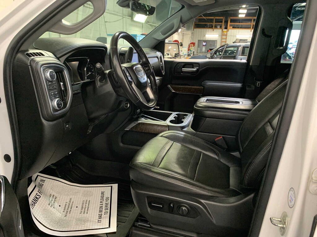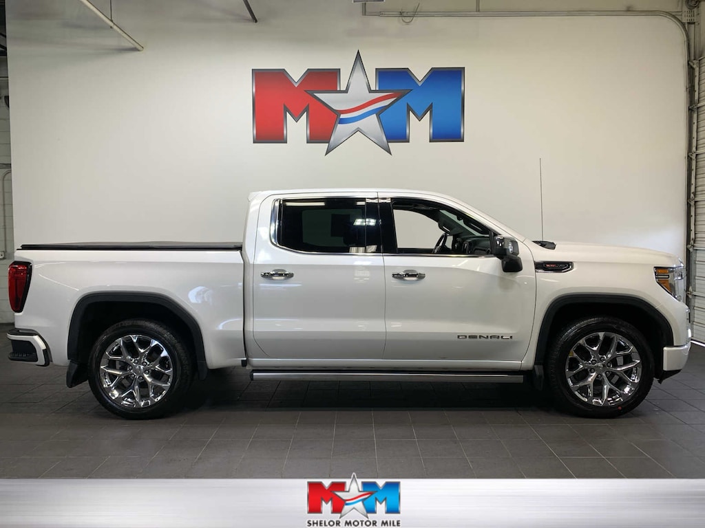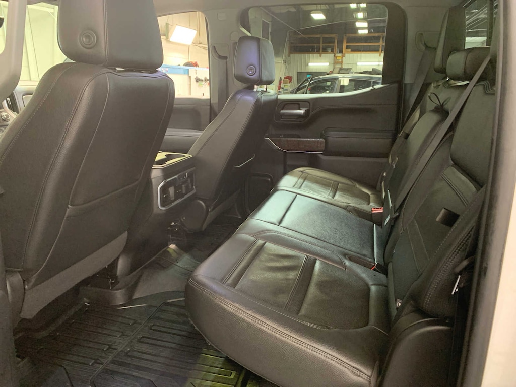includes (CWM) Technology Package, (PDJ) Driver Alert Package II, (CF5) sunroof, (BRS) GMC MultiPro Power Steps, (SFE) wheel locks, LPO and (SMF) 22 multi-dimensional polished aluminum wheels, LPO wheels will come with 4 steel 22 wheels from the factory with alignment specs set to 22 LPO wheel selected, (420 hp [313 kW] @ 5600 rpm, 460 lb-ft of torque [624 Nm] @ 4100 rpm); featuring all-new Dynamic Fuel Management that enables the engine to operate in 17 different patterns between 2 and 8 cylinders, depending on demand, to optimize power delivery and efficiency, includes (UVS) HD Surround Vision, (DRZ) Rear Camera Mirror, (UVN) Bed View Camera and (UV6) Multicolor 15 Diagonal Head-Up Display, includes (UEU) Forward Collision Alert, (UHX) Lane Keep Assist/Lane Departure Warning, (UHY) Automatic Emergency Braking, (UKJ) Front Pedestrian Braking, (TQ5) IntelliBeam headlamps, (KSG) Adaptive Cruise Control-Camera and (UE4) Following Distance Indicator, LPO, ALL-WEATHER FLOOR LINER, 1ST AND 2ND ROWS, Bluetooth® streaming audio for music and most phones; featuring Android Auto® and Apple CarPlay® capability for compatible phones, advanced voice recognition, in-vehicle apps, personalized profiles for infotainment and vehicle settings. Includes greater memory (Note: (PZ8) Hitch Guidance with hitch view is included with trim.) (STD), with overdrive and tow/haul mode. Includes Cruise Grade Braking and Powertrain Grade Braking (STD). GMC Denali with White Frost Tricoat exterior and Jet Black interior features a 8 Cylinder Engine with 420 HP at 5600 RPM*. New Tires