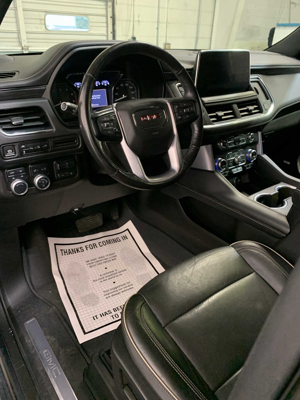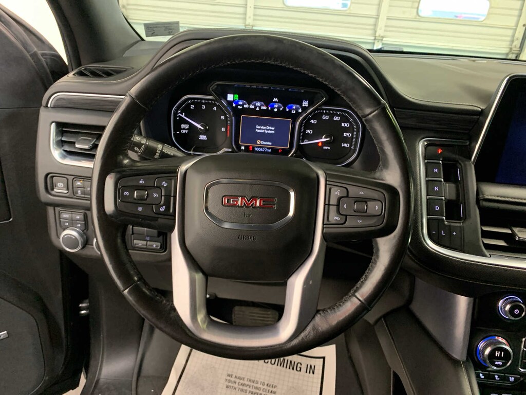 LPO wheels will come with 4 steel 22 wheels from the factory with alignment specs set to 22 LPO wheel selected (dealer-installed) (Includes factory-installed wheel locks and not (SFE) wheel locks, LPO. includes (UV2) HD Surround Vision, (UKK) Rear Pedestrian Alert, (A45) memory settings, (DXR) outside heated power-adjustable, power-folding, body-color mirrors with driver-side auto-dimming and integrated turn signal indicators, (N38) power tilt and telescopic steering column, (KI3) automatic heated steering wheel, (KA6) second row outboard heated seats, (ATT) second row power 60/40 split-folding bench seats and (AS8) third row power 60/40 splitfolding bench seats, SEATS, SECOND ROW BUCKET, POWER RELEASE, includes multi-touch display, AM/FM/SiriusXM stereo, Bluetooth® streaming audio for music and most phones, Android Auto® and Apple CarPlay® capability for compatible phones, advanced voice recognition, in-vehicle apps, personalized profiles for infotainment and vehicle settings, with Dynamic Fuel Management, Direct Injection and Variable Valve Timing, includes aluminum block construction (355 hp [265 kW] @ 5600 rpm, 383 lb-ft of torque [518 Nm] @ 4100 rpm) (STD), electronically controlled with overdrive, includes Traction Select System including tow/haul (Most vehicles built on or after 6-7-2021 with a V8 engine will have (NSS) Not Equipped with Automatic Stop/Start, which removes Automatic Stop/Start, Engine control stop/start disable button and its content.) (STD). GMC SLT with Smokey Quartz Metallic exterior and Jet Black interior features a 8 Cylinder Engine with 355 HP at 5600 RPM*. Local Trade-In Nice