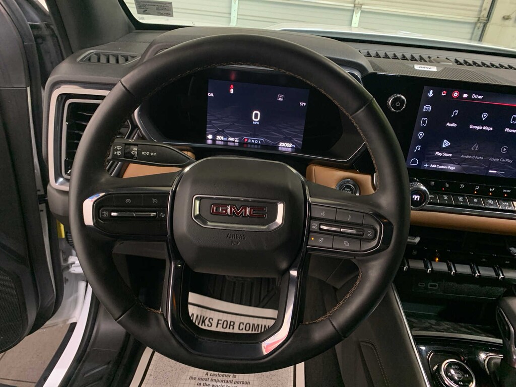includes (HX6) Jet Black/Timber perforated leather-appointed front seating surfaces, (A45) Driver memory recall, (A7J) 6-way front passenger seat, (AT9) Power Lumbar front passenger seat, (DA5) Rear Seat Center Arm Rest, (E90) Driver seat back pocket, (K4C) Wireless charging, (KI3) heated steering wheel, (KU9) Ventilated driver and front passenger seats and (Y5W) Canyon Safety Plus Package, includes (KSG) Adaptive Cruise Control, (UKK) Rear Pedestrian Alert, (UV2) HD Surround Vision and (UV6) Multicolor 6.3 Diagonal Head-Up Display, with manual shade, with external amplifier, (Includes GMC logo on headboard. includes (UD7) Rear Park Assist, (UFB) Rear Cross Traffic Braking and (UKI) Blind Zone Steering Assist, (GM Estimated 310 hp [231 kW] @ 5600 rpm, GM Estimated 430 lb-ft of torque [583 Nm] @ 3000 rpm) (STD), (STD), includes trailer hitch and 7-pin connector (Includes (JL1) Trailer brake controller. GMC 4WD AT4 with Summit White exterior and Jet Black/Timber interior features a 4 Cylinder Engine with 310 HP at 5600 RPM*.