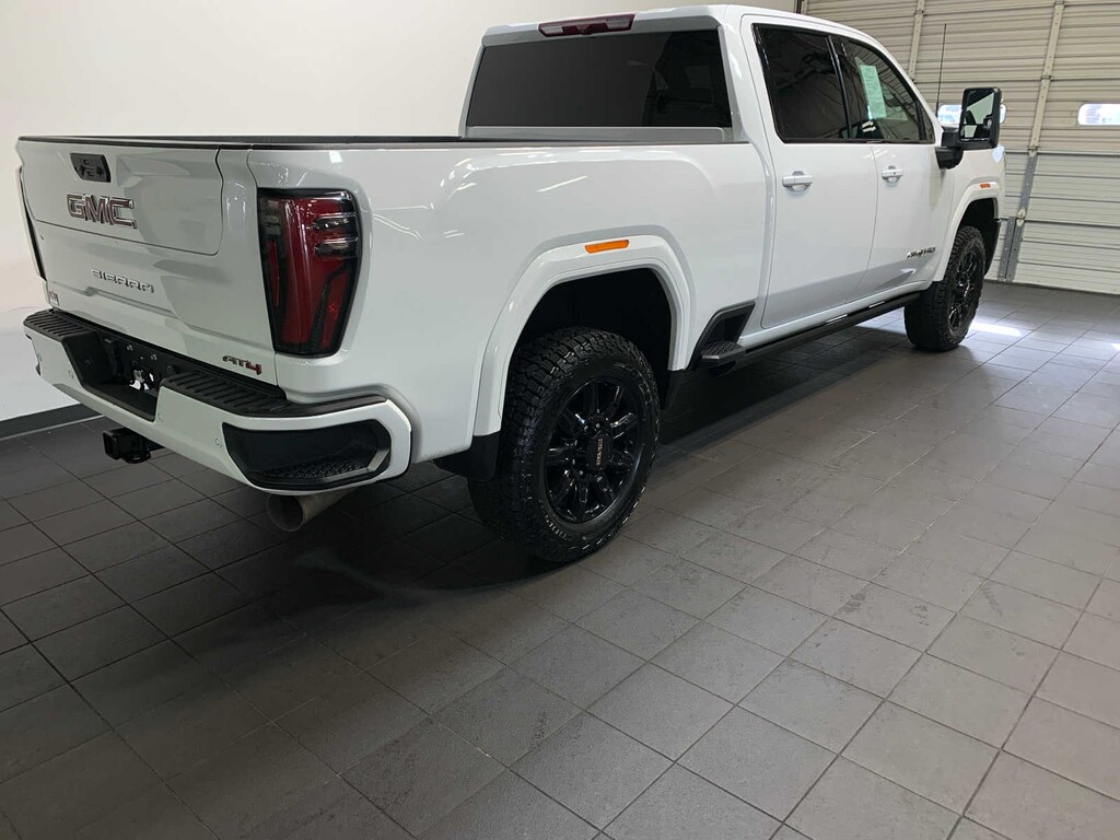 (470 hp [350.5 kW] @ 2800 rpm, 975 lb-ft of torque [1322 Nm] @ 1600 rpm) (Includes (K05) engine block heater.), includes LED lighting, Gooseneck ball and chain tiedown kit with case, (dealer-installed), includes color touch-screen, multi-touch display, AM/FM stereo, Bluetooth® streaming audio for music and most phones; featuring wireless Android Auto® and Apple CarPlay® capability for compatible phones (STD), TRANSMISSION, ALLISON 10-SPEED AUTOMATIC. GMC AT4 with Summit White exterior and Jet Black with Kalahari accents interior features a 8 Cylinder Engine with 470 HP at 2800 RPM*.