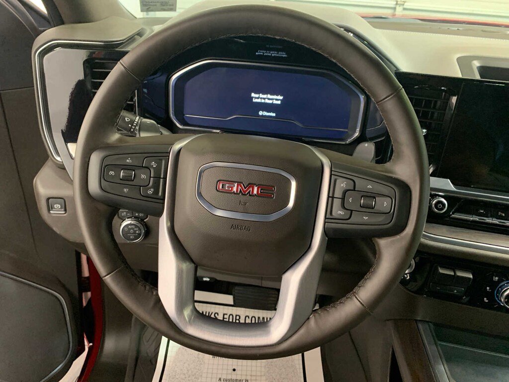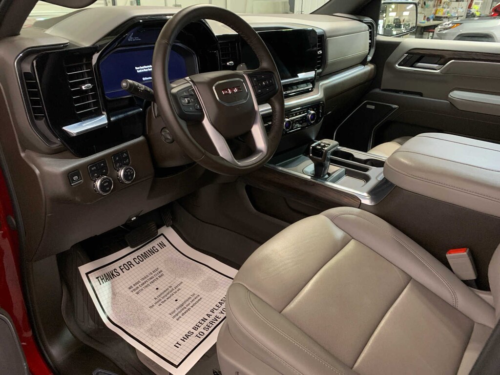 includes (PCY) SLT Convenience Package, (PDY) SLT Preferred Package, (PED) Sierra Safety Plus Package, (ZL6) ProGrade Trailering system, (NZD) 20 Polished aluminum wheels, (BVT) Chrome assist steps and (CGN) spray-on bedliner. includes (A50) bucket seats with (D07) center console, (KQV) ventilated front seats, (K4C) Wireless Charging, (UQA) Bose Premium Audio System, (N38) Power Rake/ Telescoping steering column and (UBC) USB ports, 2 (first row) Charge and Data ports located inside armrest, includes (X31) Off-Road Package, (CGN) spray-on bedliner and (RIA) All-weather floor liners, LPO Includes (NZD) 20 Polished aluminum wheels and (QAE) 275/60R20 all-terrain, blackwall tires. Includes (KSG) Adaptive Cruise Control, (A48) rear sliding power window, (UG1) Universal Home Remote and (KA6) heated second row outboard seats, includes (UD5) Front and Rear Park Assist, (UFB) Rear Cross Traffic Braking, (UKK) Rear Pedestrian Alert, (TRG) Trailer Camera Provisions, (UKV) Trailer Side Blind Zone Alert and (UV2) HD Surround Vision (Includes (HS1) Safety Alert Seat. Bluetooth® streaming audio for music and most phones; featuring wireless Android Auto® and Apple CarPlay® capability for compatible phones (STD), (355 hp [265 kW] @ 5600 rpm, 383 lb-ft of torque [518 Nm] @ 4100 rpm); featuring Dynamic Fuel Management (STD), with overdrive, and tow/haul mode and steering column paddle shifters. Includes Cruise Grade Braking and Powertrain Grade Braking. GMC SLT with Volcanic Red Tintcoat exterior and Dark Walnut/Slate interior features a 8 Cylinder Engine with 355 HP at 5600 RPM*.