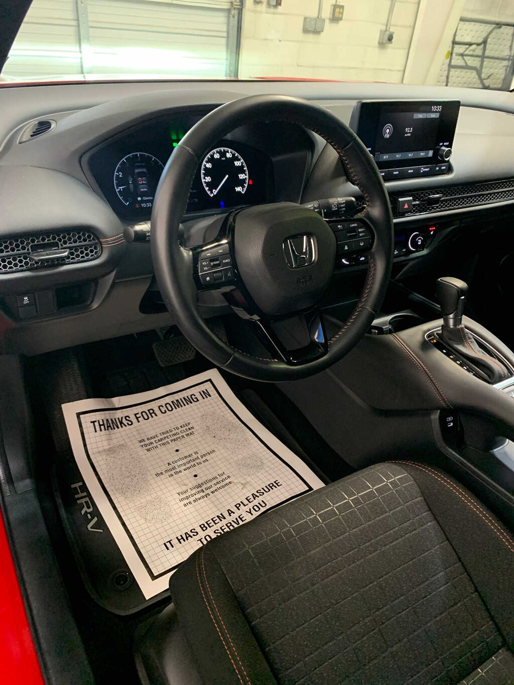 I bought a 2023 Honda HR-V LX about a week ago, and so far nothing but positive things to say. Although a bit smaller than the CR-Vs, there is plenty of space for everyday driving as well as groceries (even at Sam's Club). The design is sleek and relatively minimalistic. It has enough legroom for both the driver and all passengers, sizable trunk space, and just enough power ports for most needs, including a 12V car outlet in the trunk for tire pumps, additional plugs, etc. I love the CarPlay feature, though I wish it didn't require a USB connection. It features advanced safety functions, including Advanced Cruise Control with low-speed follow and lane-keep assist, which allows you to keep your foot off the pedals for a considerable distance, as it will slow and even come to a complete stop (although it is not recommended to rely on this feature at high speeds when stopping sooner is necessary). The keyless entry feature is also nice, and self-locks once the remote is a certain distance away. Overall, a wonderful car, and I'm very happy with my purchase.
