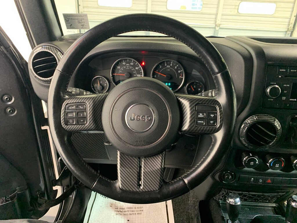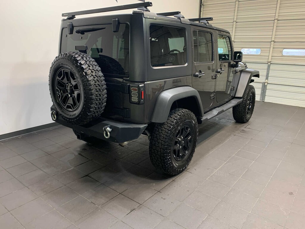 Engine: 3.6L V6 24V VVT, Transmission: 5-Speed Automatic (W5A580), BF Goodrich Brand Tires, Rear Passenger Assist Handles Kit, Willys Wheeler Package, Low Gloss Wrangler JK Decal, Black Jeep Grille Badge, For More Info Call 888-539-7474, Auto Dim Mirror w/Reading Lamp, Front 1-Touch Down Power Windows, Power Heated Mirrors, Security Alarm, Power Locks, Remote Keyless Entry, Deep Tint Sunscreen Windows, Chrome/Leather Wrapped Shift Knob, Vehicle Information Center, Uconnect Voice Command w/Bluetooth®, Leather Wrapped Steering Wheel, Tire Pressure Monitoring Display, 4-Wheel Drive Swing Gate Decal, Willys Wheeler Grille, Willys Hood Decal, Rock Rails, Tip Start, Hill Descent Control, Freedom Panel Storage Bag, Rear Window Defroster, Rear Window Wiper/Washer, TUBULAR SIDE STEPS, (STD). Jeep Willys Wheeler W with Granite Crystal Metallic Clearcoat exterior and Black interior features a V6 Cylinder Engine with 285 HP at 6400 RPM*.