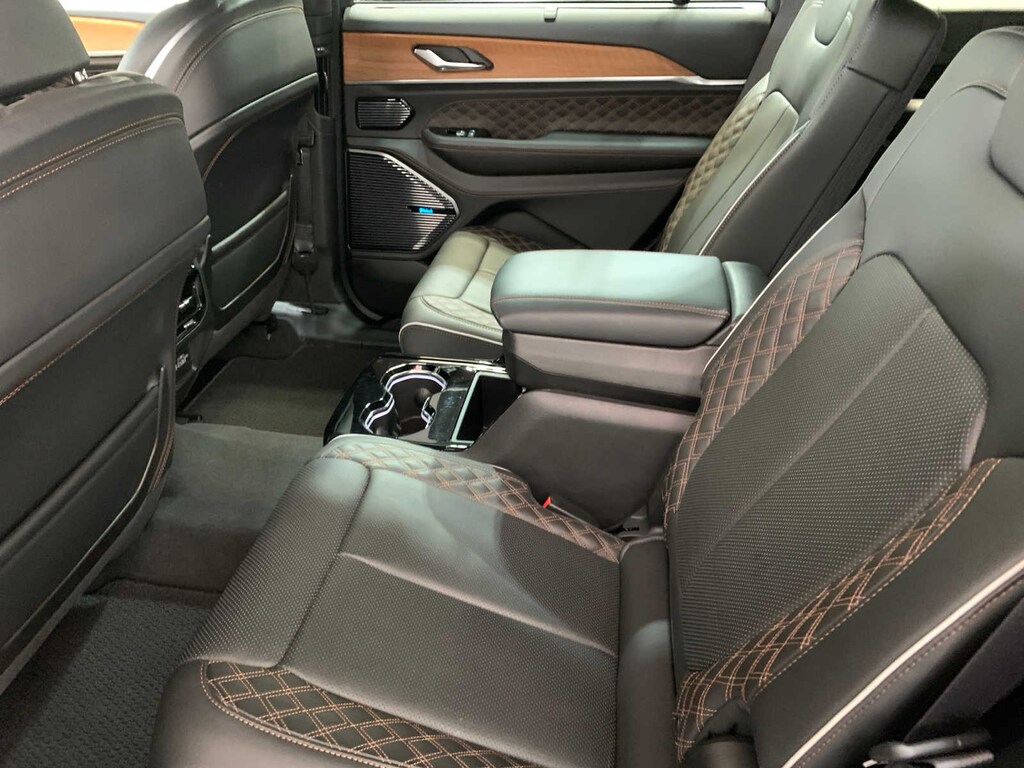 Engine: 3.6L V6 24V VVT UPG I w/ESS, Transmission: 8-Speed Automatic (8HP50), 950 Watt Amplifier, Deluxe Headliner, Palermo Leather Door Trim, Summit Reserve Badge, Ventilated Rear Seats, Summit Reserve, Wheels: 21 x 9 Black Painted Aluminum, Painted Door Cladding, Gloss Black Exterior Accents, Neutral Gray Exterior Accents, Wireless Charging Pad, 2nd Row Manual Window Shades, TRANSMISSION: 8-SPEED AUTOMATIC (8HP50), (STD). Jeep Summit Reserve with Midnight Sky exterior and Global Black interior features a V6 Cylinder Engine with 293 HP at 6400 RPM*.