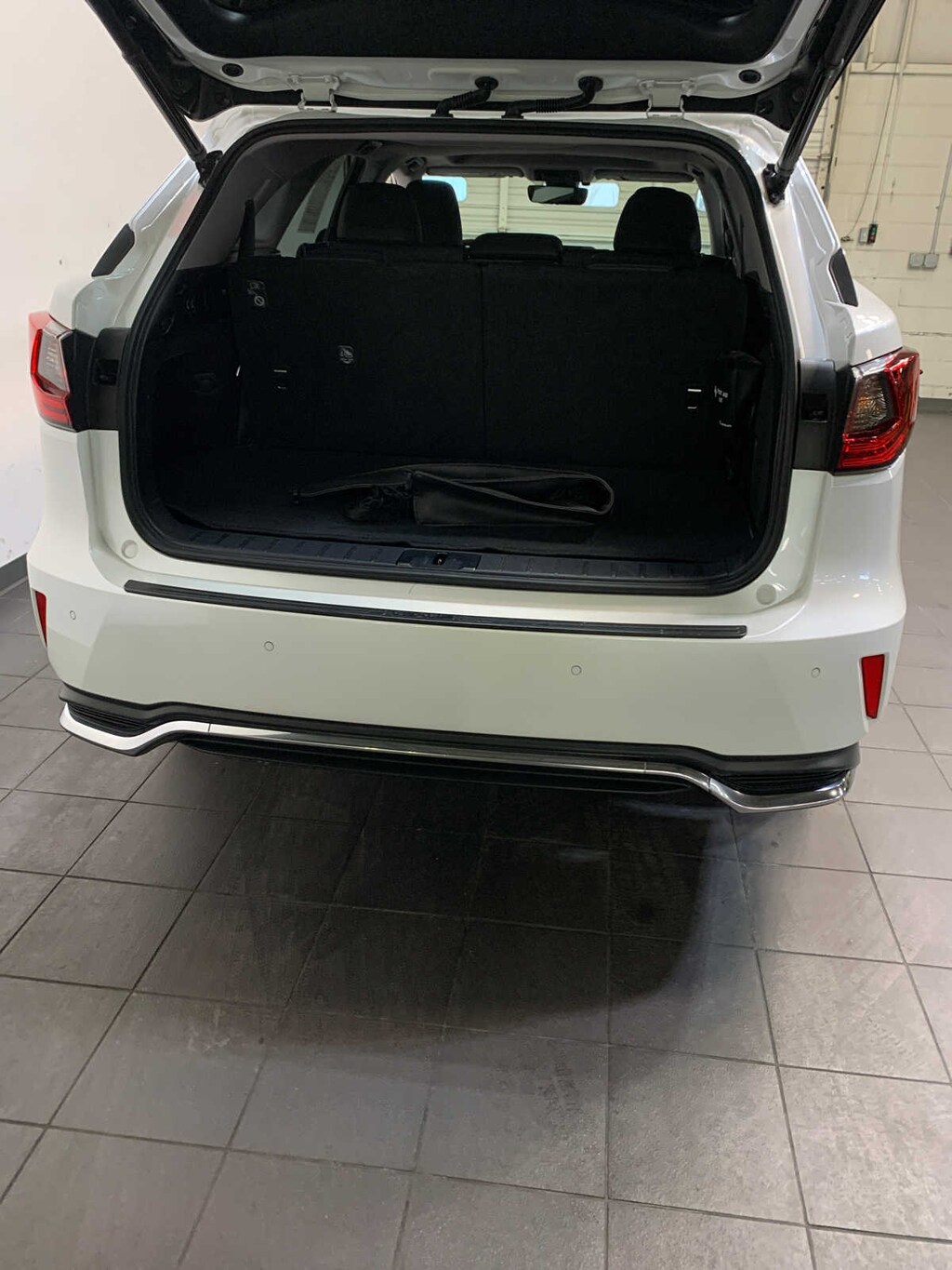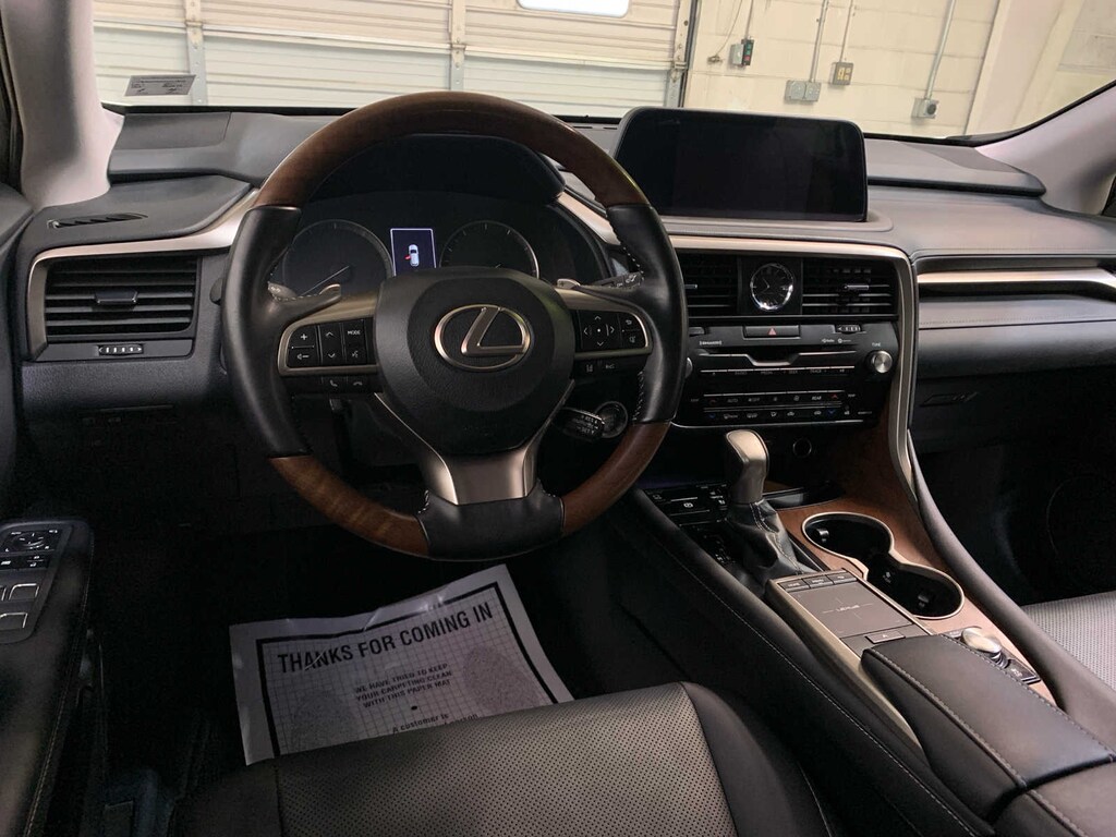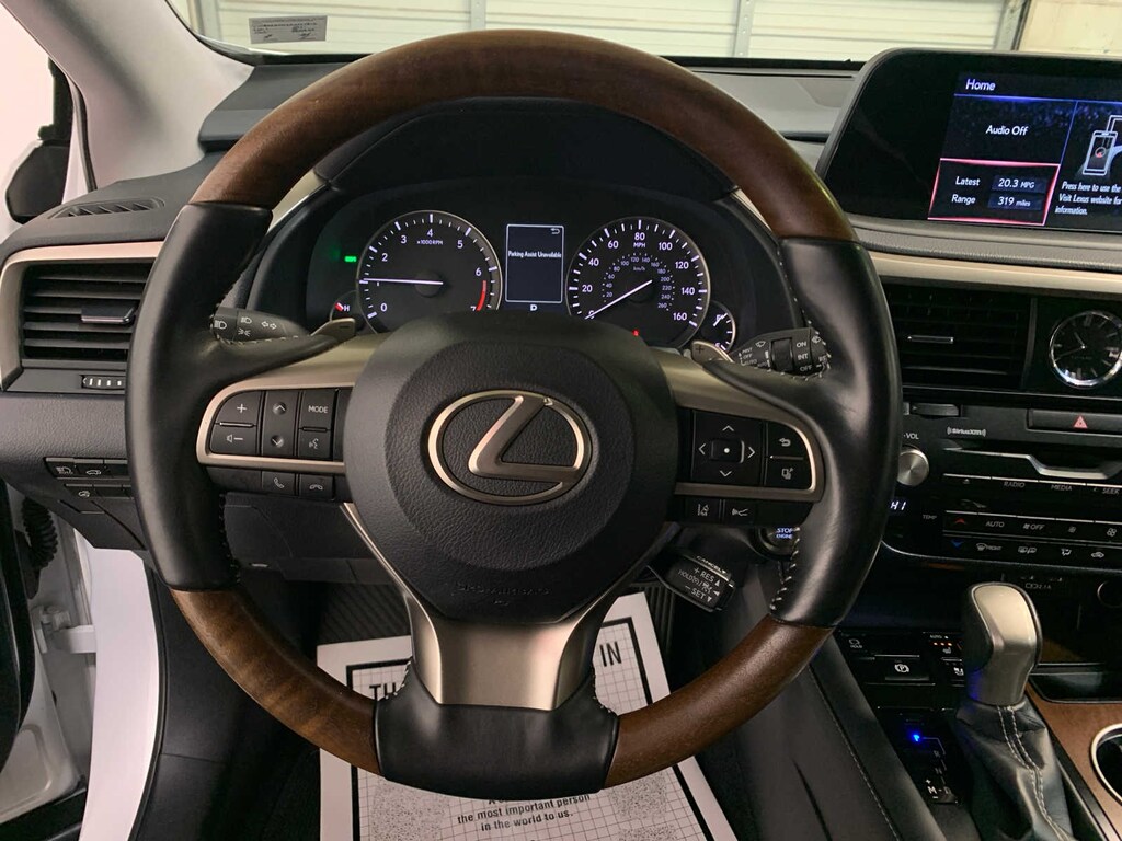 Return Easy-Access Power, Driver Memory, Tilt & Slide Moonroof/Sunroof, Wood Interior Trim, Open-pore brown walnut or matte bamboo, Tires: 235/55R20 M+S Hi-Grade, HEATED & VENTILATED FRONT SEATS, Intelligence Clearance Sonar, Rear Cross-Traffic Braking and parking support alert, paddle, Key Gloves, Alloy Wheel Locks, Carpet Cargo Mat, Cargo Net. Lexus RX 350L with Eminent White Pearl exterior and Black interior features a V6 Cylinder Engine with 290 HP at 6300 RPM*. Local Trade-In