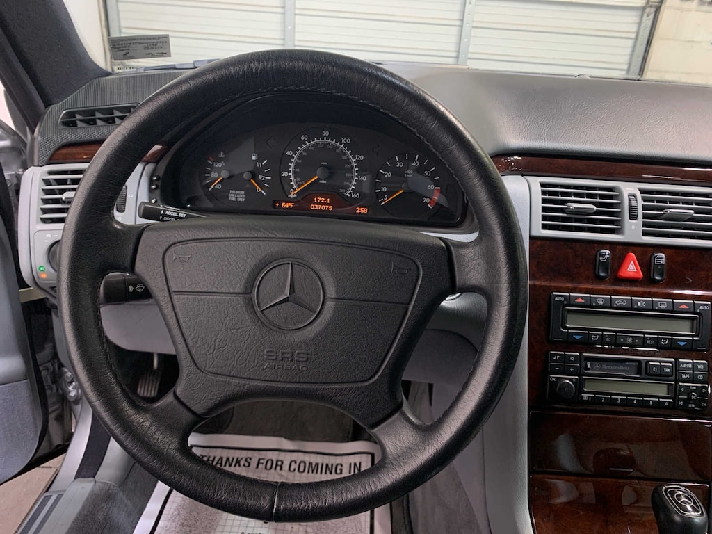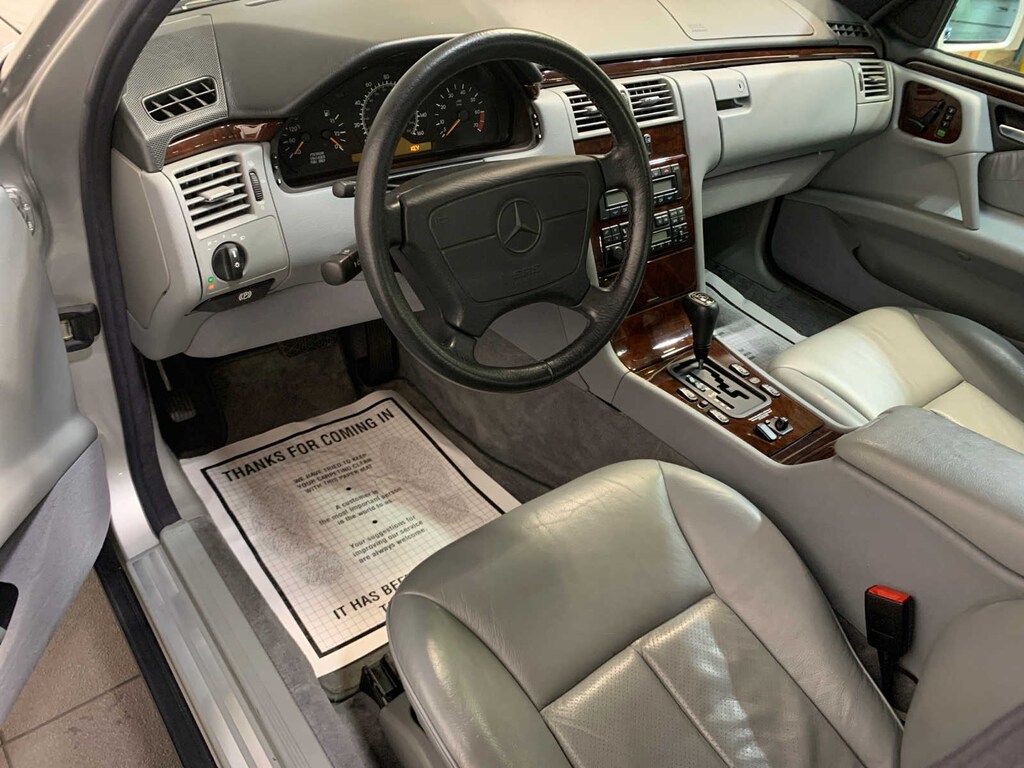 Leather Seating, Aluminum Wheels, Dual Zone A/C Keyless Entry, Heated Mirrors, Traction Control, Bucket Seats, Electrochromic rearview mirror. Mercedes-Benz E320 with Brilliant Silver (Met) exterior and Grey interior features a V6 Cylinder Engine with 221 HP at 5500 RPM*. AutoCheck One Owner