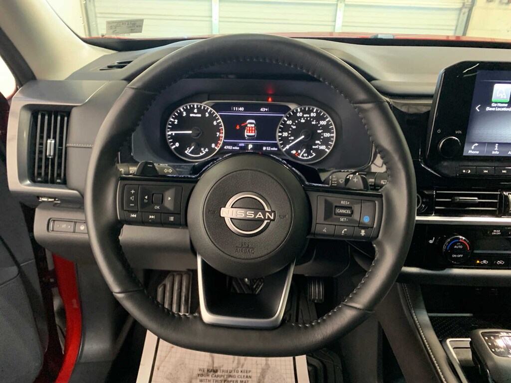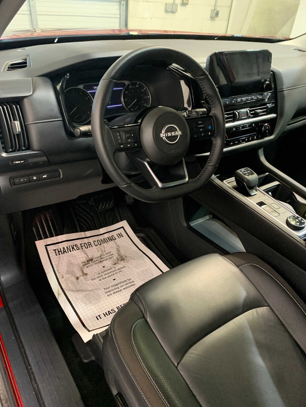 Nissan Pathfinder SL. Purchased the car July 2021 when they first came out. I love everything about this car. I have not had any issues to date. Just went thru a snow storm with about 7inches of ice and snow. I am on a pretty steep hill and zero issues in the snow and ice. I really can't think of an issue i have with this car. I have taken this on 9 hour trip with a total of seven and had no issues in the mountains.