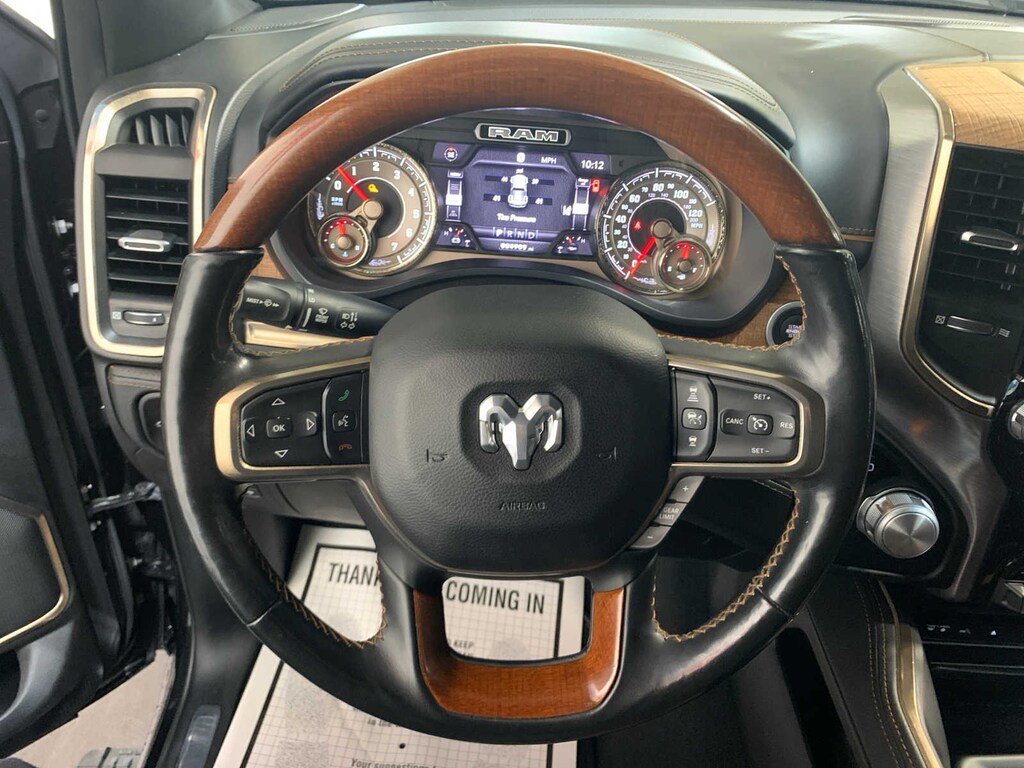 harman/kardon® 19 Speaker Premium Sound, USB Host Flip, Power Running Boards, Blind Spot & Cross Path Detection, Wireless Charging Pad, Foam Bottle Insert (Door Trim Panel), Ventilated Rear Seats, Radio: Uconnect 12 w/Navigation, Tires: 285/45R22XL BSW All Season, Adaptive Cruise Control w/Stop & Go, Advanced Brake Assist, Parallel & Perp Park Assist w/Stop, Full Speed Forward Collision Warning Plus, Lane Keep Assist, LED Dome/Reading Lamp, Dome Dual LED Reading Lamp, Active Noise Control System, Heavy Duty Engine Cooling, GVWR: 7,100 lbs, Dual Rear Exhaust w/Bright Tips, Hemi Badge, 220 Amp Alternator, ANTI-SPIN DIFFERENTIAL REAR AXLE, TRANSMISSION: 8-SPEED AUTOMATIC (8HP75). Ram Longhorn with Diamond Black Crystal Pearlcoat exterior and New Saddle/Black interior features a 8 Cylinder Engine with 305 HP at 6400 RPM*.