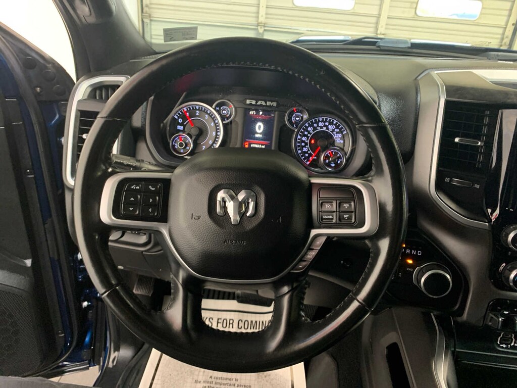 Google Android Auto®, Radio: Uconnect 4 w/8.4 Display, Selectable Tire Fill Alert, Integrated Center Stack Radio, Rear View Auto Dim Mirror, Power Adjustable Pedals, For More Info, Call 800-643-2112, Leather Wrapped Steering Wheel, Rear Dome w/On/Off Switch Lamp, Front Fog Lamps, Glove Box Lamp, Footwell Courtesy Lamp, 8.4 Touchscreen Display, Foam Bottle Insert (Door Trim Panel), Wheels: 18 x 8.0 Polished Aluminum, Apple CarPlay®, Locking Lower Glove Box, Power Adjustable Folding Heated Black Tow Mirrors, Steering Wheel Mounted Audio Controls, Dual Glove Boxes, Universal Garage Door Opener, Power-Folding Mirrors, 2nd Row In Floor Storage Bins, Sun Visors w/Illuminated Vanity Mirrors, Tires: LT285/60R20E OWL On/Off Road, Body Color Grille Surround, Black Interior Accents, Sport Decal, Body Color Door Handles, Painted Front Bumper, Painted Rear Bumper, Selectable Tire Fill Alert, SPRAY IN BEDLINER, 9 ALPINE SPEAKERS W/SUBWOOFER, PARKSENSE FRONT/REAR PARK ASSIST SYSTEM, Bucket Seats, Power Adjust 8-Way Driver Seat, Folding Flat Load Floor Storage, Rear 60/40 Folding Seat, Front Seat Back Map Pockets, Power 2-Way Driver Lumbar Adjust, Full Length Upgraded Floor Console, (STD), (STD). Ram Big Horn with Patriot Blue Pearlcoat exterior and Black interior features a 8 Cylinder Engine with 410 HP at 5600 RPM*. Local Trade-In Nice