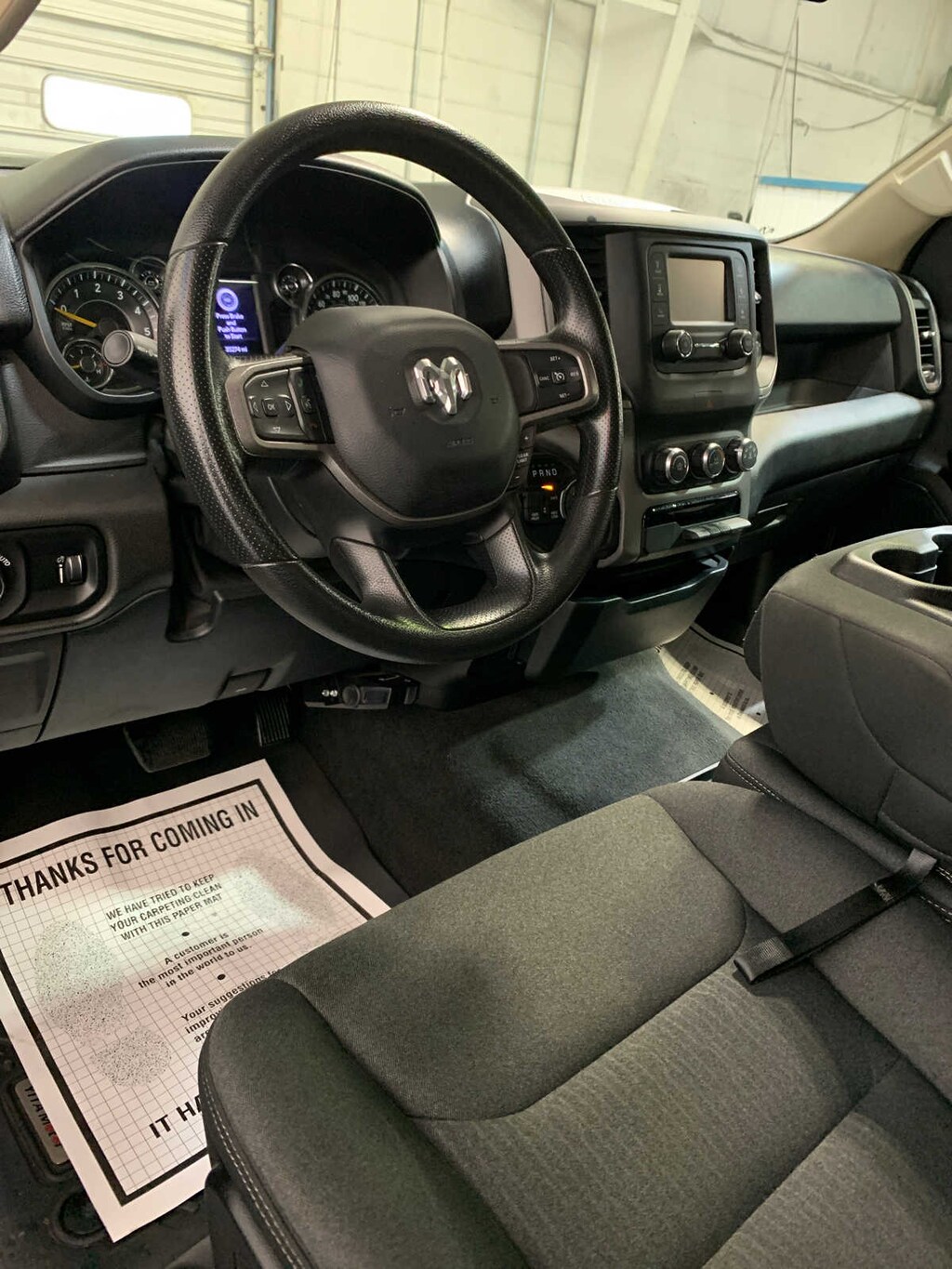 SiriusXM Satellite Radio, 2nd Row In Floor Storage Bins, Carpet Floor Covering, Front & Rear Floor Mats, Rear Power Sliding Window, GVWR: 7,100 lbs, Hemi Badge, Active Noise Control System, 180 Amp Alternator, Heavy Duty Engine Cooling, Bright Rear Bumper, Wheels: 18 x 8 Premium Paint Cast (DISC), Grille Surround 1 Chrome Texture 1 Black, Bright Front Bumper, Off Road Decals, Steering Gear Skid Plate, Front Suspension Skid Plate, Tires: 275/55R20 OWL All-Terrain (DISC), Front Extra HD Shock Absorbers, Rear Extra HD Shock Absorbers, Tire: Full Size Spare, Tow Hooks, E-Locker Rear Axle, Transfer Case Skid Plate, Fuel Tank Skid Plate, Hill Descent Control, TRANSMISSION: 8-SPEED AUTOMATIC (8HP75). Ram Tradesman with Maximum Steel Metallic Clearcoat exterior and Diesel Gray/Black interior features a 8 Cylinder Engine with 305 HP at 6400 RPM*. New Tires, Local Trade-In Nice