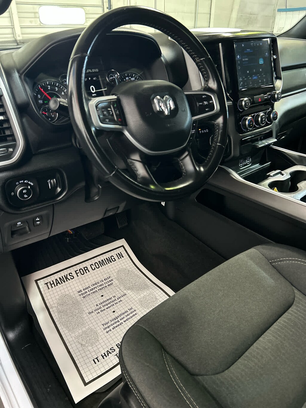 Active Noise Control System, Heavy Duty Engine Cooling, Passive Tuned Mass Damper, Dual Rear Exhaust w/Bright Tips, HEMI Badge, GVWR: 6,900 lbs, 26 Gallon Fuel Tank, WHEELS: 20 X 9 ALUMINUM CHROME CLAD (WRK), Google Android Auto®, SiriusXM Radio Service, Bluetooth® Handsfree Phone & Audio, USB Host Flip, Rear Window Defroster, Integrated Center Stack Radio, Rear View Auto Dim Mirror, Power Adjustable Pedals, For More Info, Call 800-643-2112, Rear Power Sliding Window, Rear Dome w/On/Off Switch Lamp, Connectivity - US/Canada, Glove Box Lamp, 4G LTE Wi-Fi Hot Spot, Power 8-Way Driver Seat, Auto Dim Exterior Driver Mirror, Radio: Uconnect 5 W w/8.4 Display, 8.4 Touchscreen Display, Foam Bottle Insert (Door Trim Panel), Class IV Receiver Hitch, Apple CarPlay®, Big Horn IP Badge, Black Premium Power Mirrors (GUL), SiriusXM Satellite Radio, Exterior Mirrors w/Supplemental Signals, Exterior Mirrors Courtesy Lamps, Universal Garage Door Opener, Cluster 3.5 TFT Color Display, Sun Visors w/Illuminated, Google Android Auto®, SiriusXM Radio Service, USB Host Flip, Disassociated Touchscreen Display, HD Radio, For Details, Visit DriveUconnect.com, Integrated Center Stack Radio, Connectivity - US/Canada, Air Conditioning ATC w/Dual Zone Control, GPS Navigation, 4G LTE Wi-Fi Hot Spot, SiriusXM w/360L, All Radio Equipped Vehicles, Connected Travel & Traffic Services, All R1 High Radios, 8.4 Touchscreen Display, Apple CarPlay®, Power 8-Way Driver Seat, Bucket Seats, Full Length Floor Console, Delete LED Lamp - Floor Console Bin, Power 2-Way Driver Lumbar Adjust, ANTI-SPIN DIFFERENTIAL REAR AXLE, REMOTE START SYSTEM, TRANSMISSION: 8-SPEED AUTOMATIC (8HP75). Ram Big Horn with Bright White Clearcoat exterior and Black interior features a 8 Cylinder Engine with 305 HP at 6400 RPM*. Great Shape