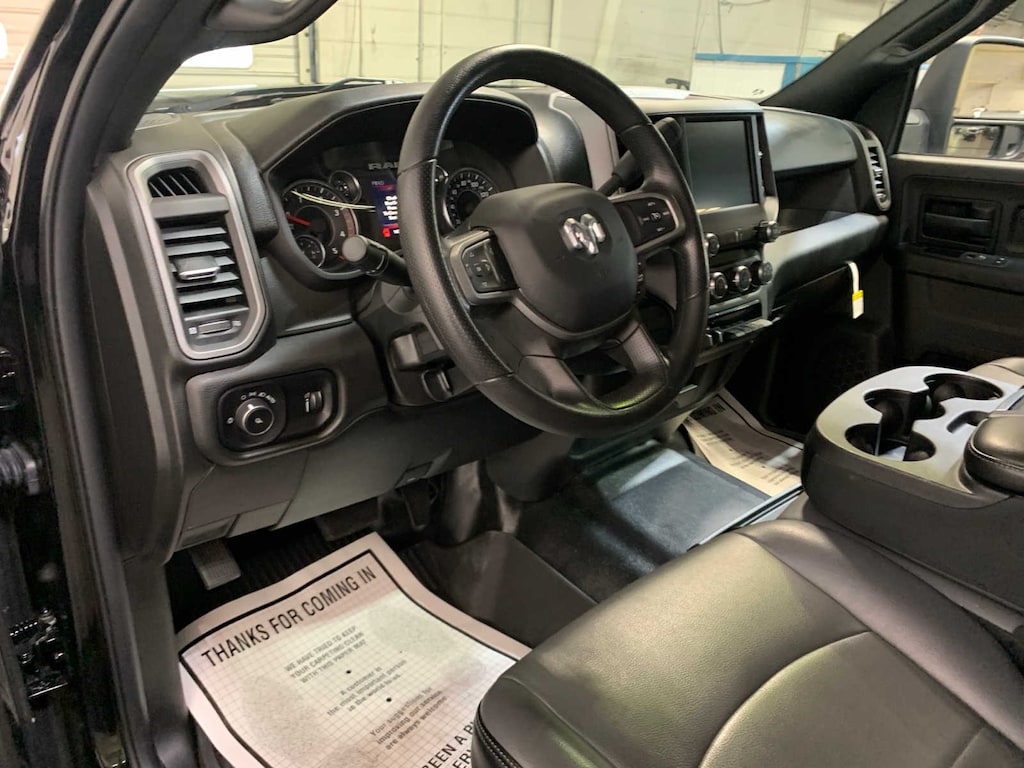 Selective Catalytic Reduction (Urea), Dual 730 Amp Maintenance Free Batteries, Cummins Turbo Diesel Badge, Heavy Duty Engine Cooling, Tow Hooks, Diesel Exhaust Brake, Supplemental Heater, Front Bumper Sight Shields, Capless Fuel Fill w/o Discriminator, Bright Rear Bumper, Chrome Grille Surround, Matte Black Mesh Grille w/Chrome, Chrome Headlamp Bezels, 18 Steel Spare Wheel, Wheels: 18 x 8.0 Steel Chrome Clad, Tires: LT275/70R18E BSW AS, Bright Front Bumper, Google Android Auto®, Selectable Tire Fill Alert, Bluetooth® Handsfree Phone & Audio, SiriusXM Satellite Radio, For Details, Visit DriveUconnect.com, Integrated Center Stack Radio, For More Info, Call 800-643-2112, Connectivity - US/Canada, 4G LTE Wi-Fi Hot Spot, All Radio Equipped Vehicles, All R1 Low Radios, 8.4 Touchscreen Display, Apple CarPlay®, LED Tail Lamps, MOPAR SPRAY IN BEDLINER, ANTI-SPIN DIFFERENTIAL REAR AXLE, PARKSENSE REAR PARK ASSIST SYSTEM, Exterior Mirrors w/Heating Element, Forward & Reverse Utility Lights, Mirror Running Lights, Exterior Mirrors w/Supplemental Signals, Power Adjust Mirrors, Exterior Mirrors Courtesy Lamps, Power Telescoping Mirrors, Auto Power-Folding Mirrors, Power Adjustable Convex Aux Mirrors, Urethane Shift Control. Ram Tradesman with Diamond Black Crystal Pearlcoat exterior and Diesel Gray/Black interior features a Straight 6 Cylinder Engine with 410 HP at 5600 RPM*. Originally bought here, Local Trade-In