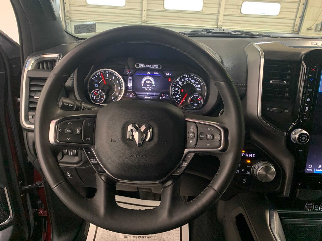 Bucket Seats, Rear 60/40 Folding Split Recline Seat, #1 Seat Foam Cushion, Center Console Parts Module, Heated Second Row Seats, Power Adjust 8-Way Driver Seat, Full Length Upgraded Floor Console, Remote Tailgate Release, Rain Sensitive Windshield Wipers, (STD). Ram Laramie with Delmonico Red Pearlcoat exterior and Black interior features a Straight 6 Cylinder Engine with 420 HP at 5200 RPM*. New Tires