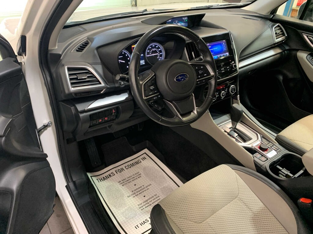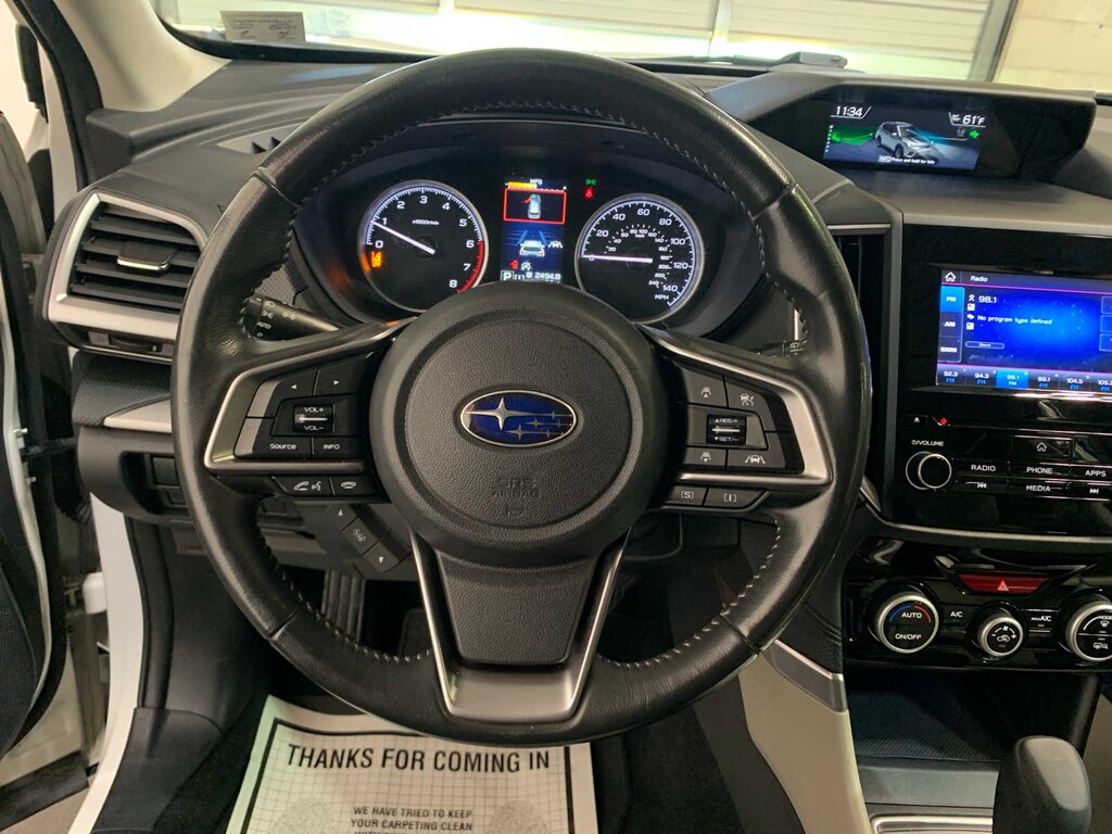 drivers seatback pocket, Heated Front Seats, Heated Exterior Mirrors, Blind Spot Detection w/Rear Cross Traffic Alert, Keyless Access w/Push-Button Start, PIN code access, Windshield Wiper De-Icer, Rear Bumper Cover, Auto-Dimming Mirror w/Compass & HomeLink, All-Weather Floor Liners, Auto-Dimming Exterior Mirror w/Approach Lighting, Cargo Tray. Subaru Premium with Crystal White Pearl exterior and Gray interior features a 4 Cylinder Engine with 182 HP at 5800 RPM*.
