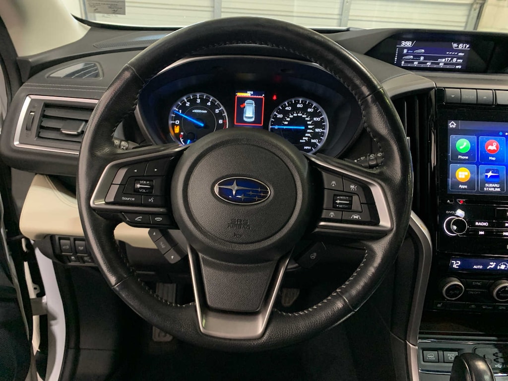 Cargo Area Cover, Dual Glass Panoramic Power Moonroof, power sunshade, Radio: Subaru STARLINK 8.0 Multimedia Nav System, AM/FM stereo HD Radio w/single disc CD player, MP3/WMA/CRR/RW file capability, multi-touch gesture high resolution LCD display screen, voice activated controls for radio and navigation, Bluetooth® audio streaming connectivity, Bluetooth® hands-free phone connectivity, Bluetooth® hands-free SMS text messaging connectivity (applicable w/compatible cell phone), Near Field Communication (NFC), iPod control capability, SiriusXM All Access radio (subscription required), SiriusXM Traffic (subscription required), SiriusXM Travel Link (subscription required), smartphone integration for Aha, Android Auto®, CarPlay and Pandora, STARLINK cloud applications, steering wheel controls for, Cargo Tray, Part number J501SXC100, All-Weather Floor Liners, Part number J501SXC030, Splash Guards, Part number J101SXC000, Map & Reading Lights LED Upgrade - 6 Bulb Kit, Part number H461SXC100, Rear Bumper Cover, Part number E771SXC000, Auto-Dimming Exterior Mirror w/Approach Light, Part number J201SFL002. Subaru Limited with Crystal White Pearl exterior and Slate Black interior features a 4 Cylinder Engine with 260 HP at 5600 RPM*.