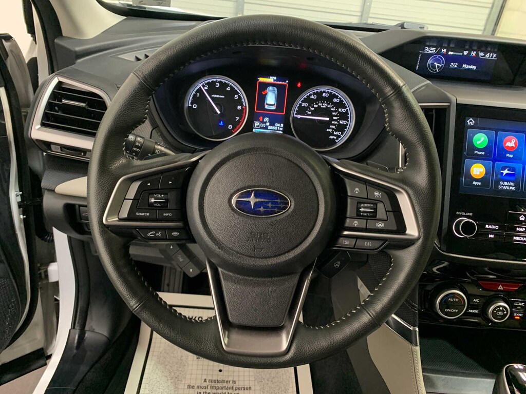 Reverse Automatic Braking System (RAB), Heated Steering Wheel, Radio: Subaru STARLINK 8.0 Multimedia Nav System, AM/FM stereo HD Radio, multi-touch gesture high resolution display screen, voice activated controls, Bluetooth® audio streaming, hands-free phone connectivity and hands-free SMS text messaging connectivity (refer to subaru.com for cell phone compatibility), Near Field Communication (NFC), iPod control capability, SiriusXM All Access radio (4 months free trial/subscription required after), smartphone integration for AHA, Android Auto®, Apple CarPlay®, Pandora and STARLINK cloud applications (refer to subaru.com for app availability), USB and Over The Air (OTA) audio system update, steering wheel controls for audio and Bluetooth®, 3.5mm auxiliary input jack and dual USB A, Auto-Dimming Exterior Mirror w/Approach Light, Auto-Dimming Mirror w/Compass & HomeLink. Subaru Limited with Crystal White Pearl exterior and Gray interior features a 4 Cylinder Engine with 182 HP at 5800 RPM*. Local Trade-In