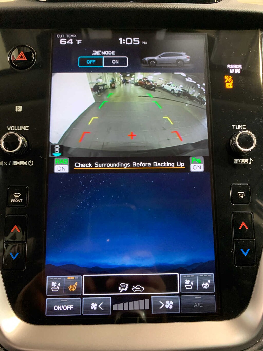I’ve been learning to drive in this car and tonight I accidentally went off into the driveway ditch and bumped the concrete pipe cover thingy on the side, however the Subaru Outback has a cover underneath the car on the sides so once we got out of the ditch (we were in there for like a second it’s a powerful car and we have your average sized driveway ditch) the underside of the car was fine. I think it’s great because it has a lane signal thingy and I tend to veer to the left when I drive so it’ll tell me when I’m over. It’s easy to find the hazard button for when I’m not comfortable driving fast on a road so I’m going twenty under and also those seat warmers are great.