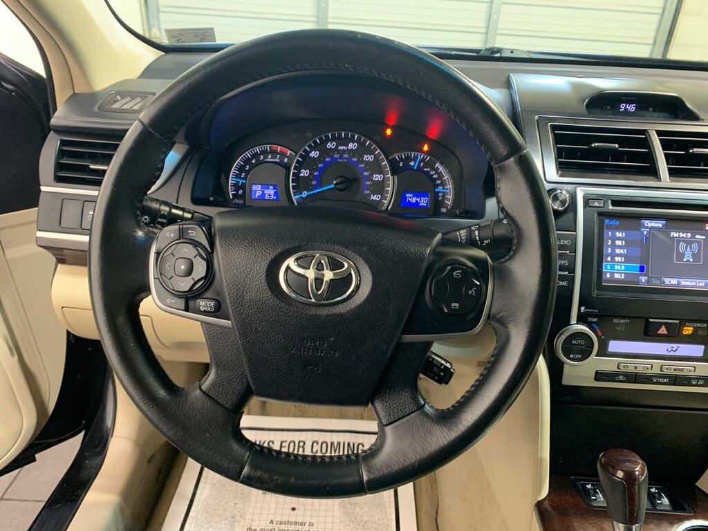 Edmunds.com explains The interior of the 2014 Camry feels roomy and its thin front pillars provide good outward visibility. The spacious rear seat is complemented by a nicely reclined seatback angle that helps the Camry match the Honda Accord for the most comfortable backseat in the class.. Great Gas Mileage: 35 MPG Hwy.