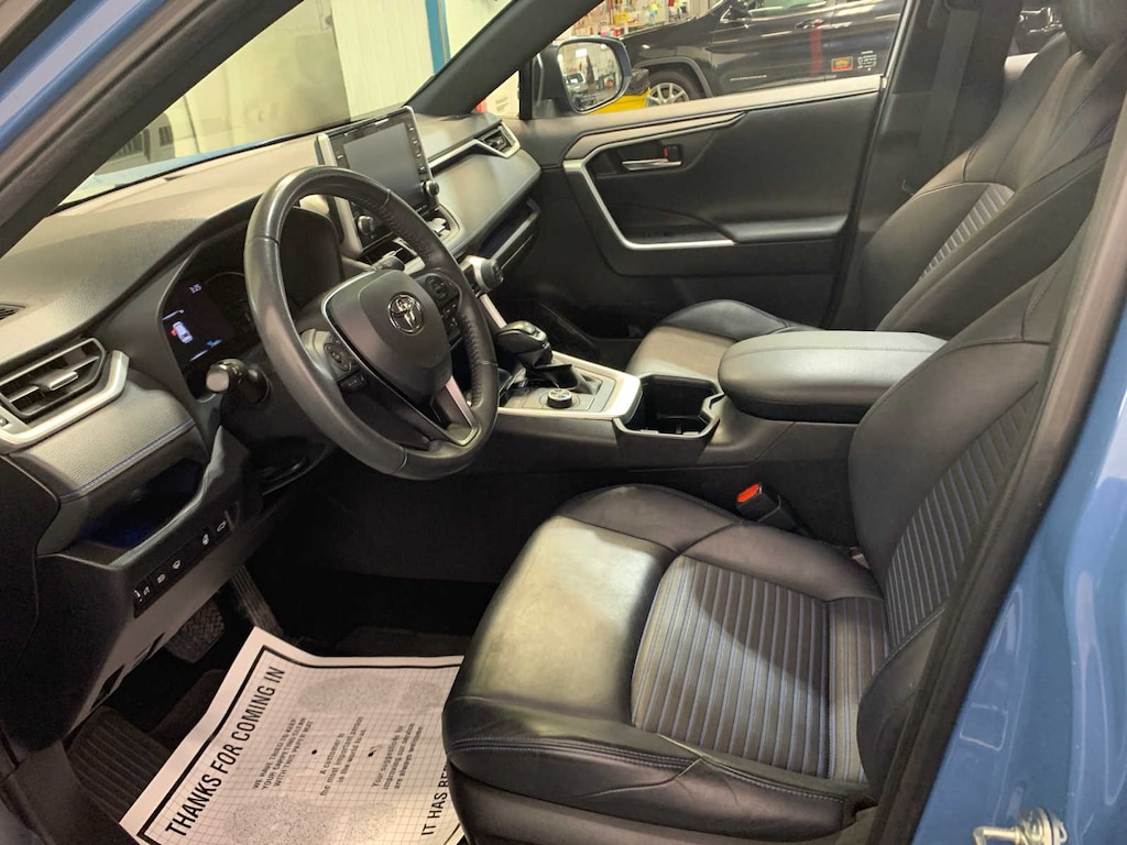 Wiper Deicer, Rain Sensing Front Wipers, de-icer function, Heated 3-Spoke Leather Steering Wheel, DOOR SILL PROTECTOR (TMS). Toyota Hybrid XSE with Cavalry Blue/Midnight Black Metallic exterior and Black interior features a 4 Cylinder Engine with 219 HP at 5700 RPM*.