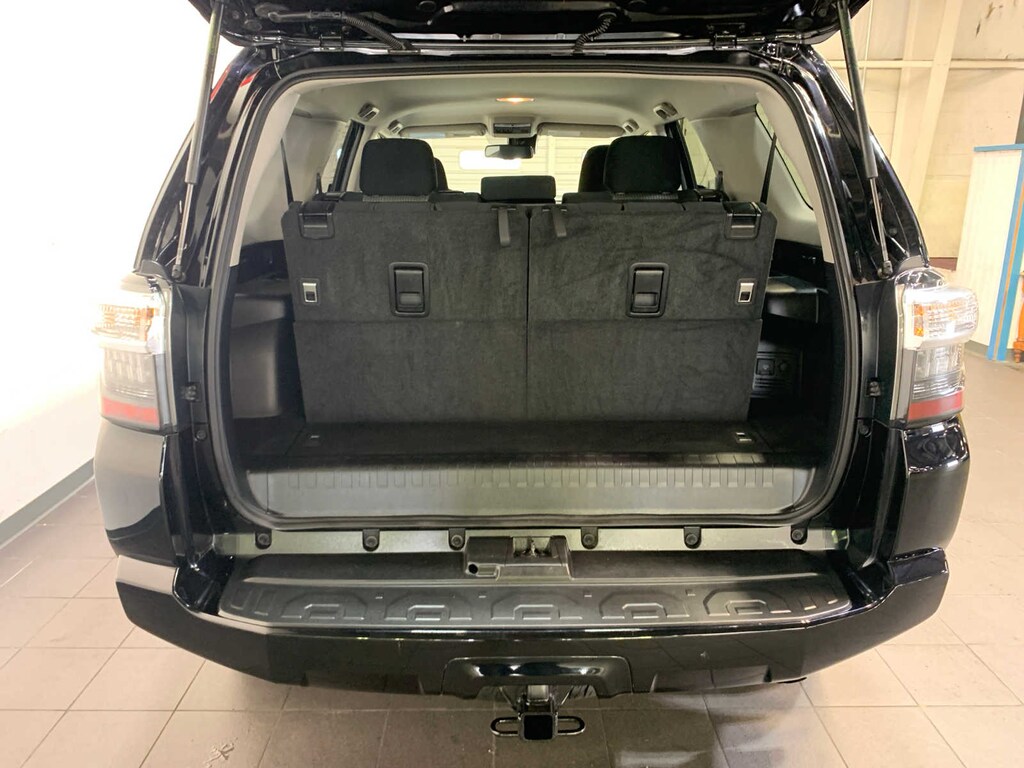 8.0 touch-screen, HD Radio, 8 speakers, Android Auto®, Apple CarPlay® and Amazon Alexa compatible, USB media port, 4 USB charge ports, Dynamic Navigation w/up to 3-year trial, Dynamic POI Search, Dynamic Voice Recognition, advanced voice recognition hands-free phone capability and music streaming via Bluetooth® wireless technology, SiriusXM w/3-month Platinum Plan trial and Connected Services (Safety Connect, Wi-Fi Connect w/up to 2 GB within 3-month trial and Destination Assist Connect ), See toyota.com/audio-multimedia for details, sliding 2nd row w/passenger-side 1-touch access to 3rd row, Trunk Carpet, TRAIL RUNNING BOARDS (TMS). Toyota SR5 with Midnight Black Metallic exterior and Black/Graphite interior features a V6 Cylinder Engine with 270 HP at 5600 RPM*.