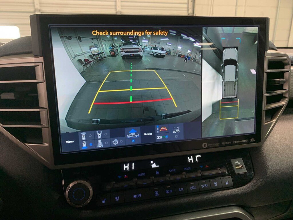 tilt/slide and power sunshade, 14-inch touchscreen, 12 JBL speakers (including subwoofer and amplifier), Android Auto® and Apple CarPlay® compatible and SiriusXM w/3-month platinum plan trial subscription, See toyota.com/audio-multimedia for details, Connected services - Safety Connect w/up to 10-year trial, Remote Connect, Drive Connect, Service Connect w/up to 10-year trial, Wi-Fi connect w/up to 3 GB within 1-month trial, See toyota.com/connected-services for details, gloss-black window molding, door handles, mirror caps and tailgate handle, Wheels: 20 x 8J Matte-Black Alloy, Tires: 265/60R20, Black Overfenders & Rear Bumper, Towing Technology Package, High Grade Full LED Headlamp, HEATED LEATHER STEERING WHEEL, Blind Spot Monitor, Panoramic View Back Monitor, Multi-Terrain Back Monitor. Toyota Limited Hybrid with Blueprint exterior and Boulder interior features a V6 Cylinder Engine with 437 HP at 5200 RPM*. Serviced here, Originally bought here, Local Trade-In