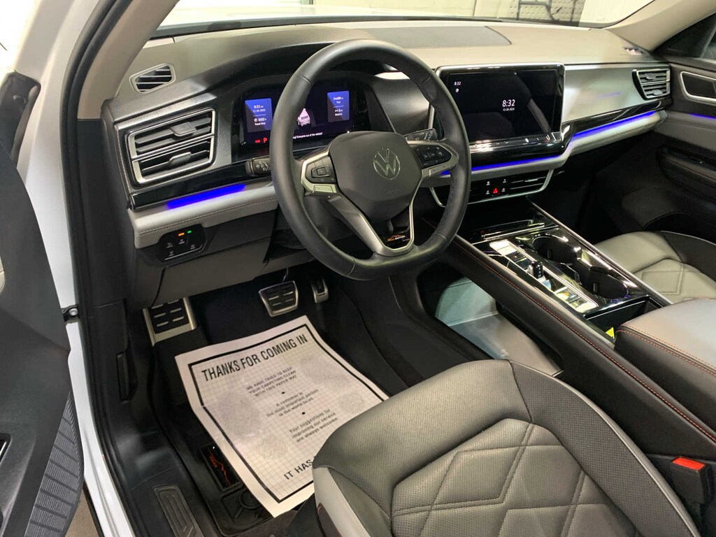 KEY FEATURES INCLUDE Third Row Seat, Navigation, Sunroof, Panoramic Roof, Power Liftgate, Heated Driver Seat, Cooled Driver Seat, Back-Up Camera, iPod/MP3 Input, Onboard Communications System, Trailer Hitch, Aluminum Wheels, Dual Zone A/C, Lane Keeping Assist, Hands-Free Liftgate. Rear Spoiler, MP3 Player, Rear Air, Satellite Radio, Remote Trunk Release. Volkswagen 2.0T Peak Edition SEL with Opal White Pearl exterior and Titan Black w/Orange interior features a 4 Cylinder Engine with 269 HP at 5500 RPM*.